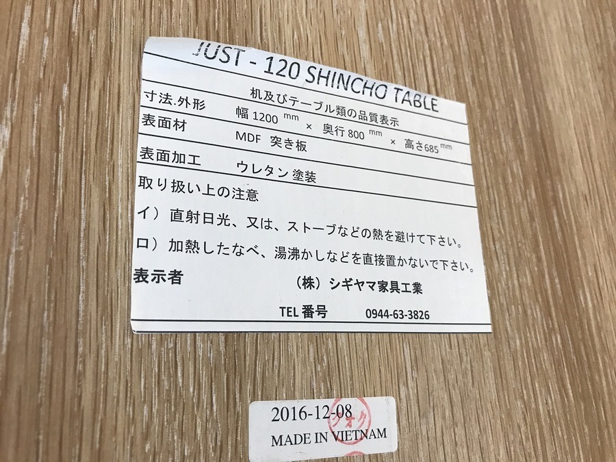 通常の天板と色合いが変わってしまってます。