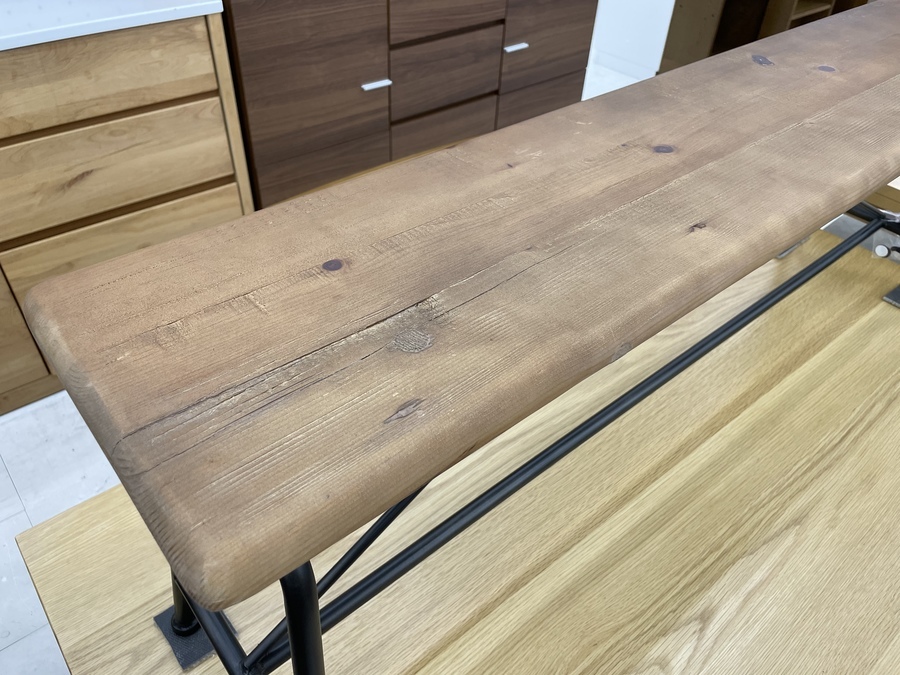 ニレ材のテーブルトップも抜群の雰囲気。