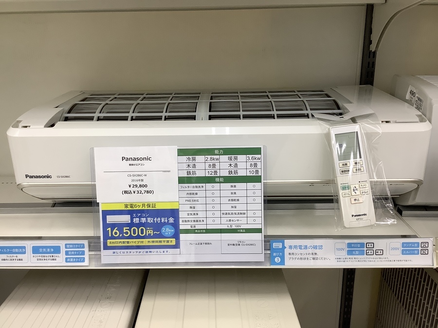 CS-SX286C-W 2016年製 2.8kW 3.6kW リモコン付