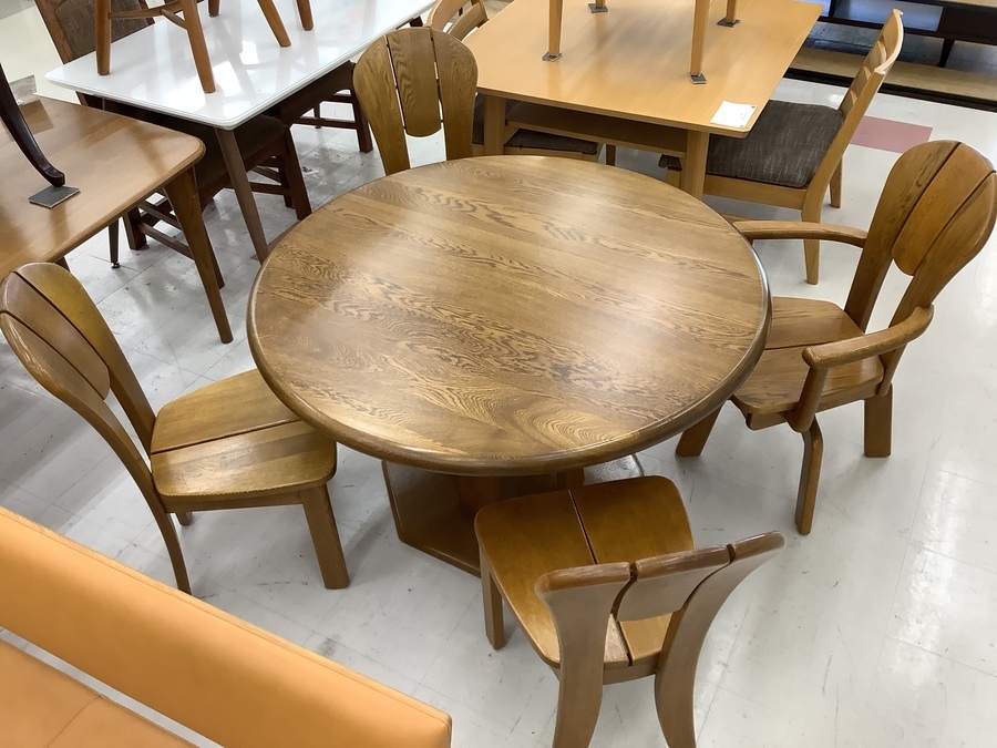 【スマホで購入】浜本工芸 (ハマモトコウゲイ) ダイニング5点セット ブラウン ラウンドタイプ ナラ材入荷しました!