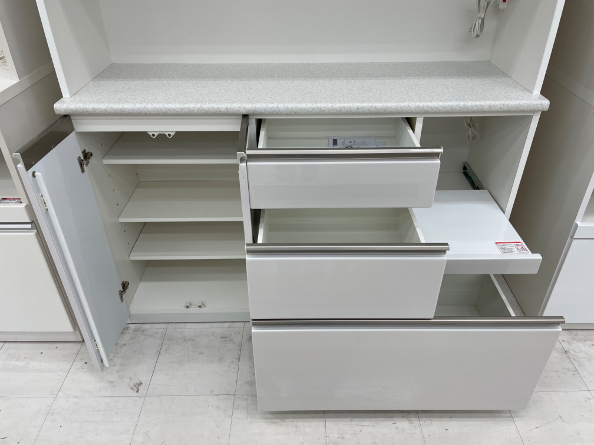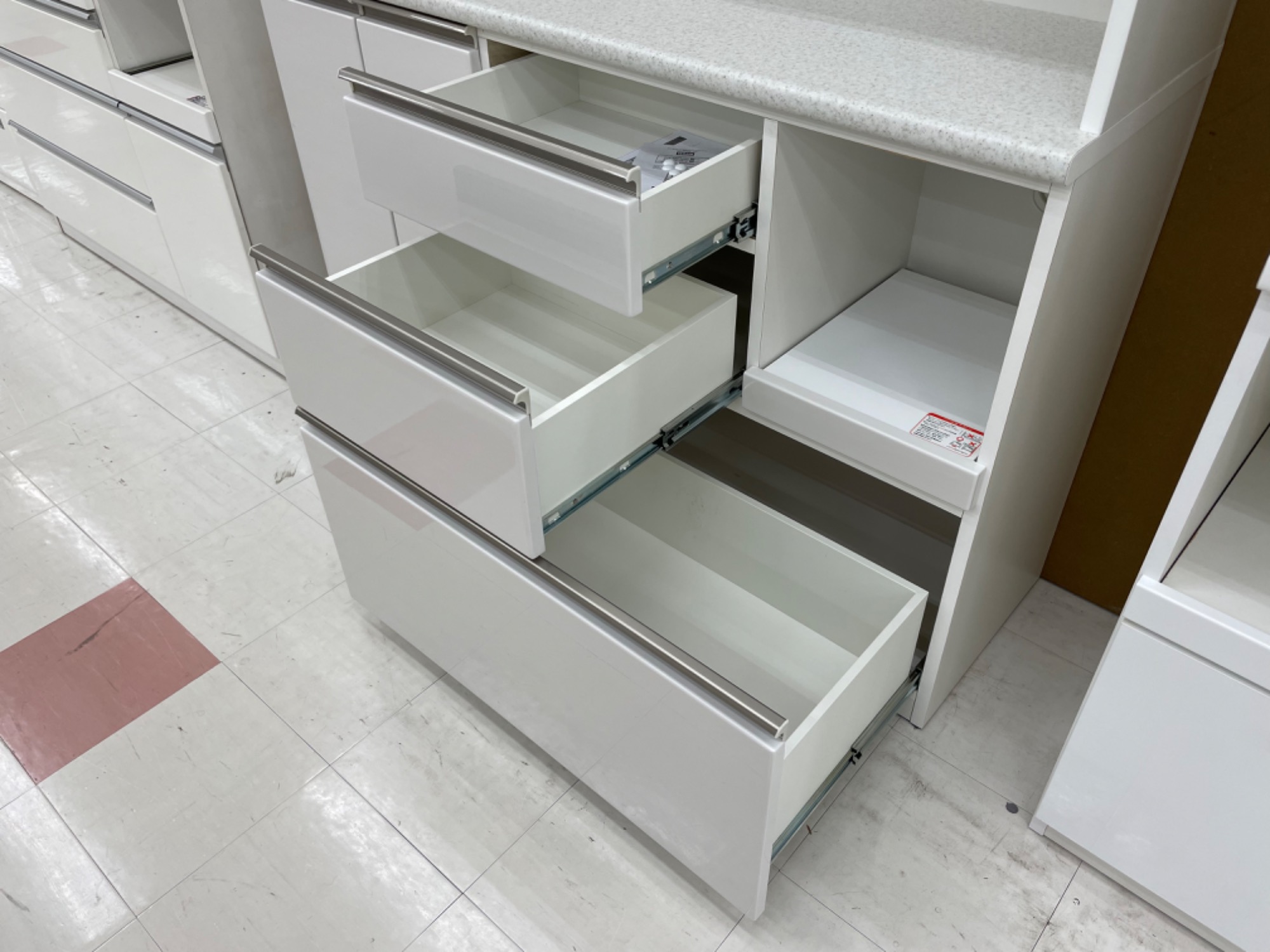 3段ある引出しは全て奥まで使いやすいフルオープンレールです。