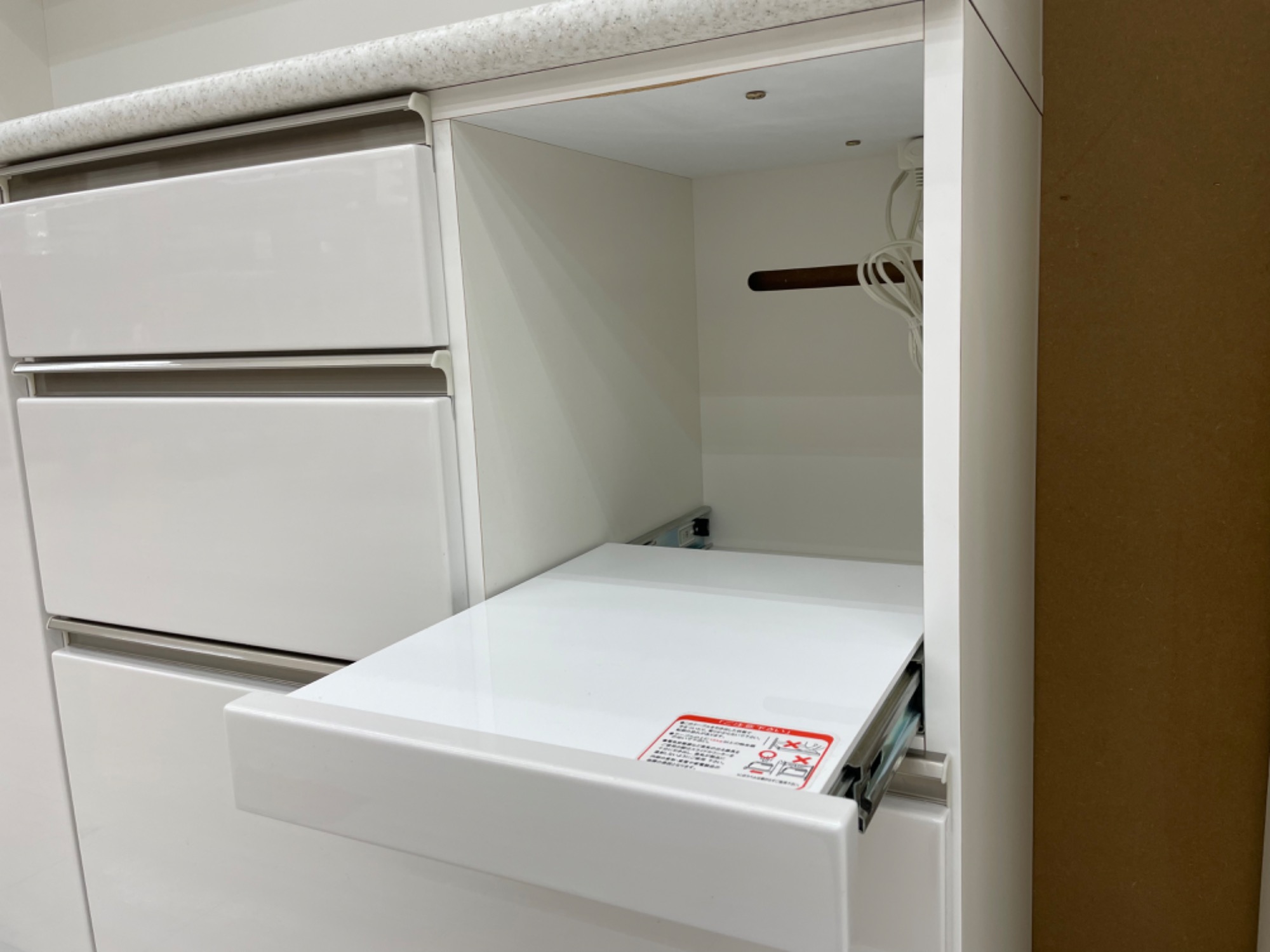炊飯器などを置けるスライド棚部分。