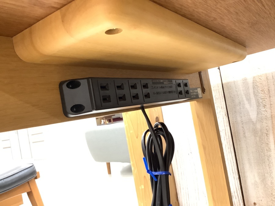 天板下にはコンセントタップが常備。