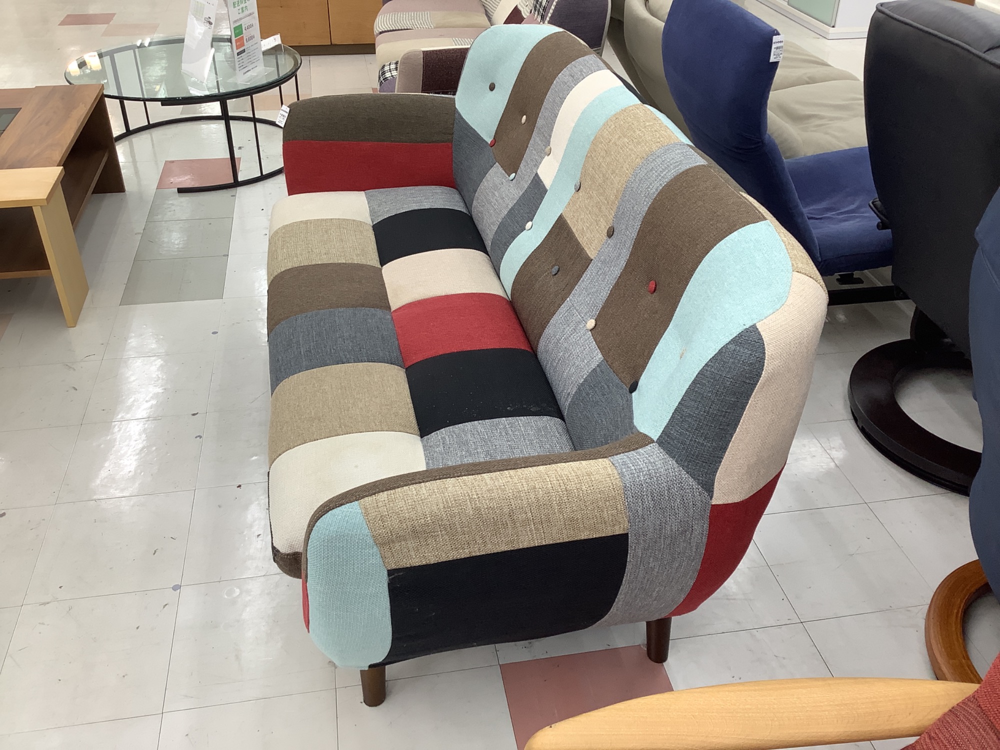 【スマホで購入】関家具 (セキカグ) 3人掛けソファー マルチカラー パッチワークソファー 布 入荷しました!