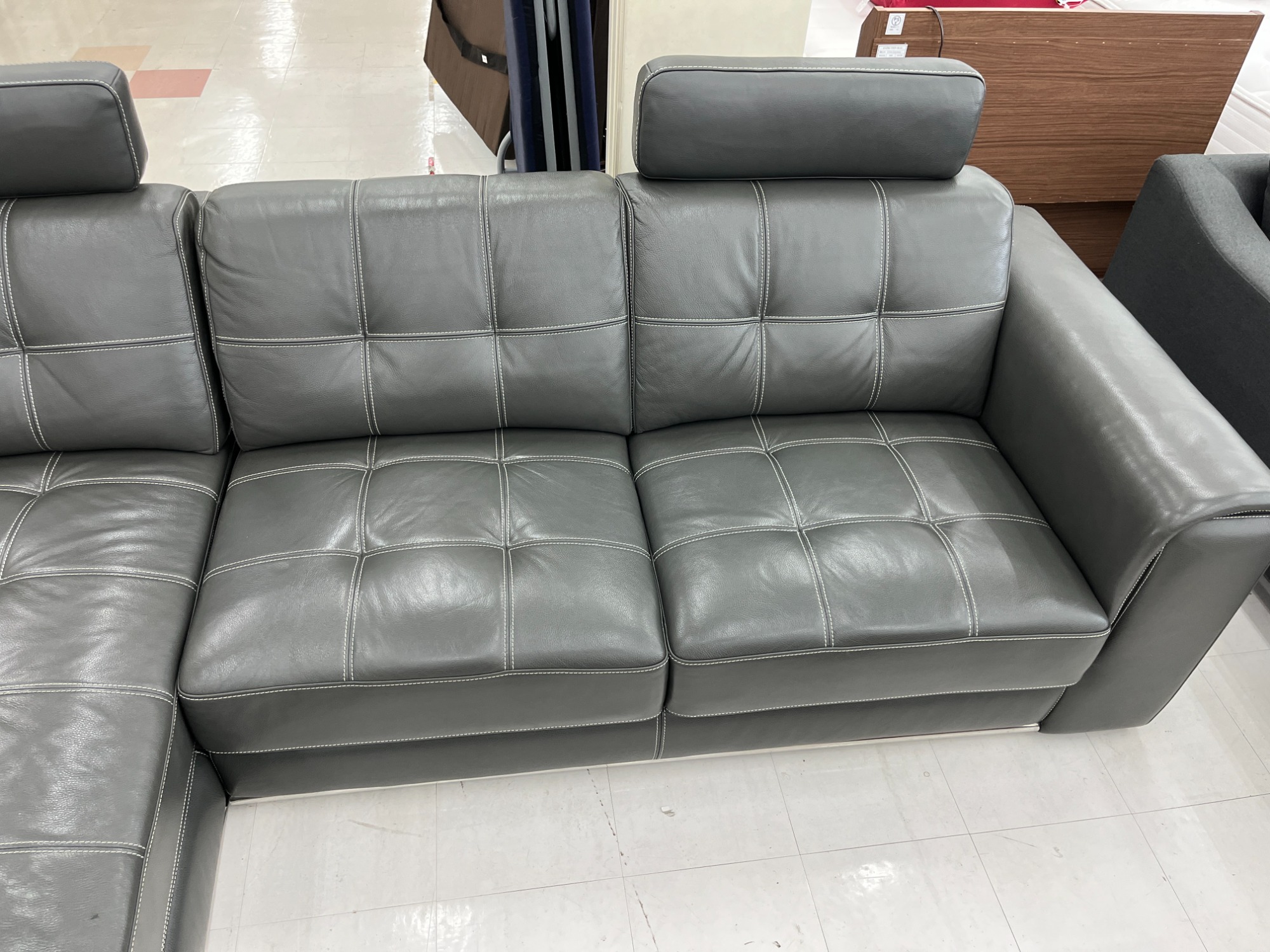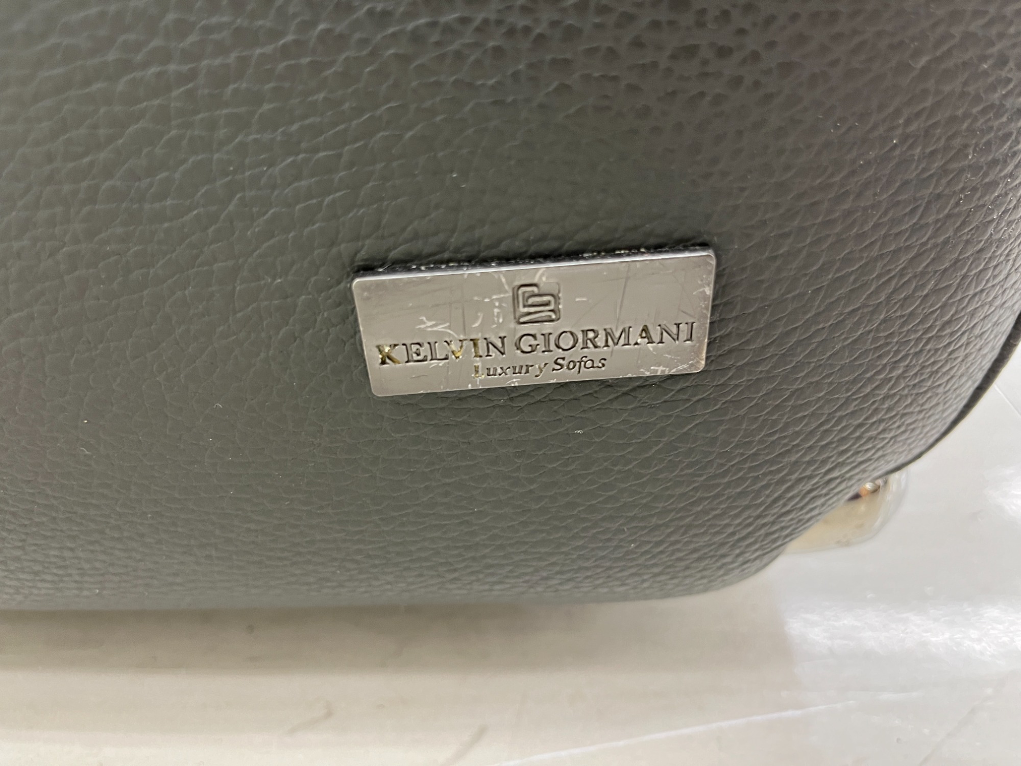 【スマホで購入】エレガントなくつろぎ空間を演出する、KELVIN GIORMANI (ケルビンジョルマーニ) のグレー3人掛けカウチソファー が入荷しました!