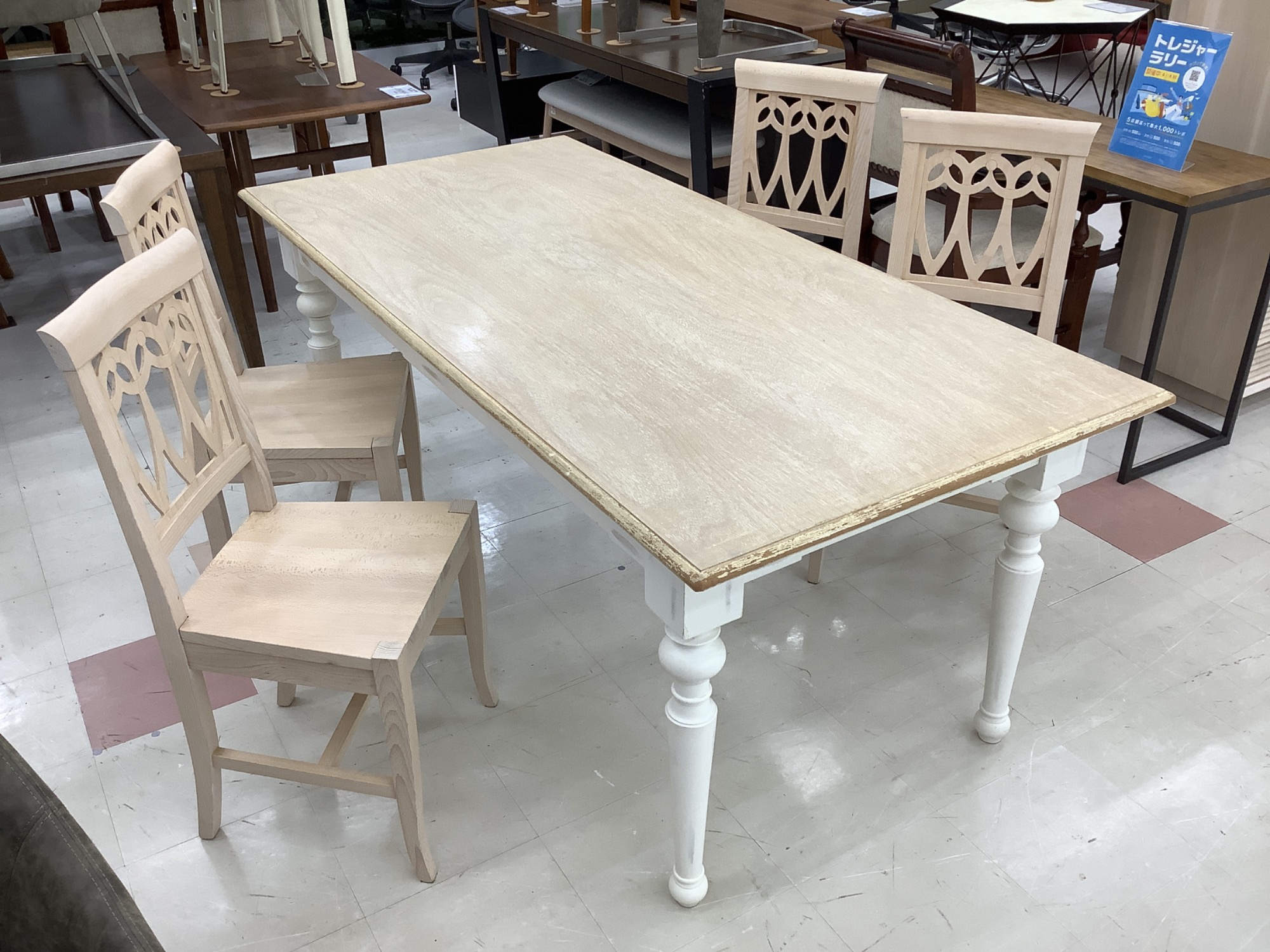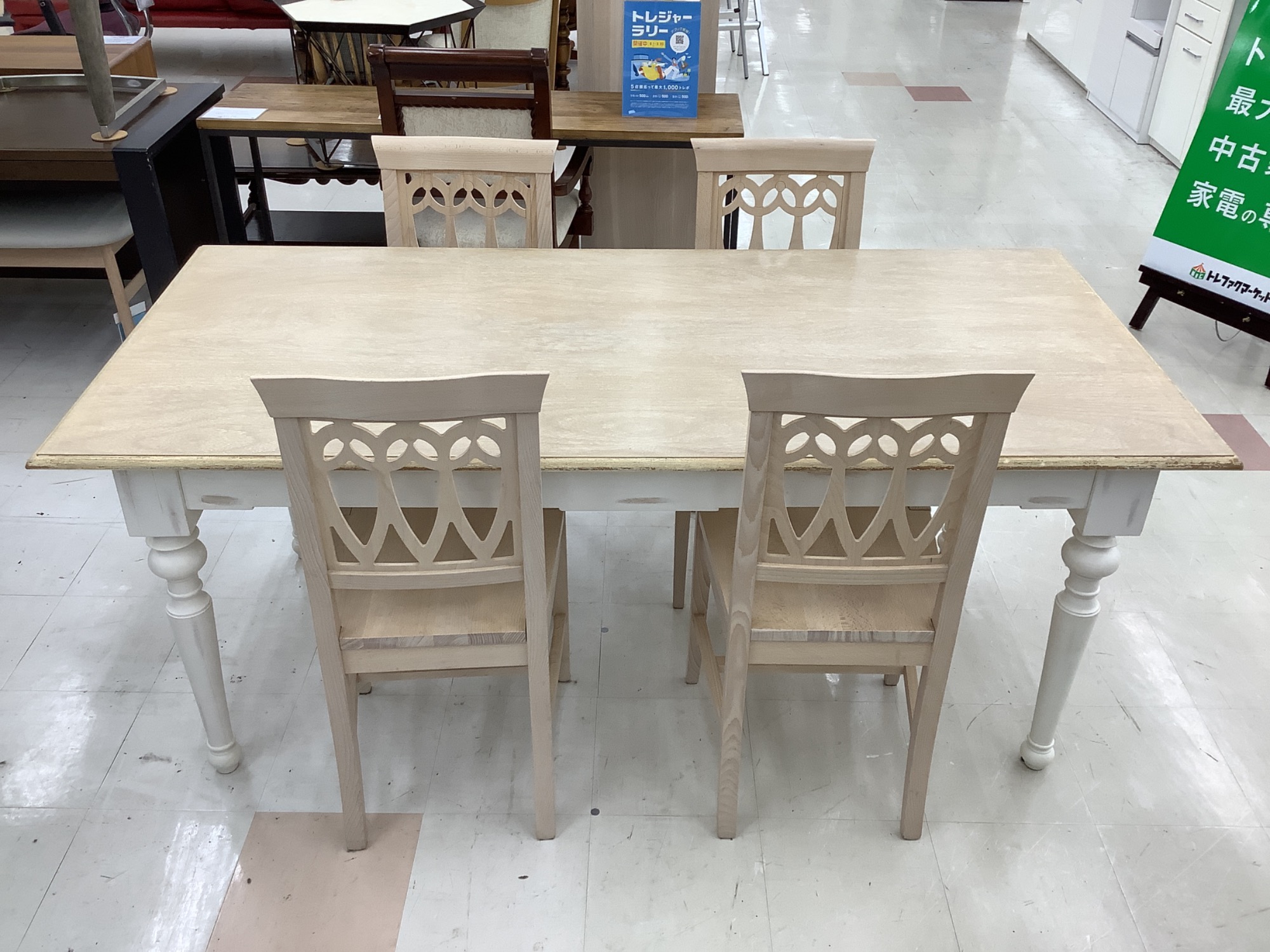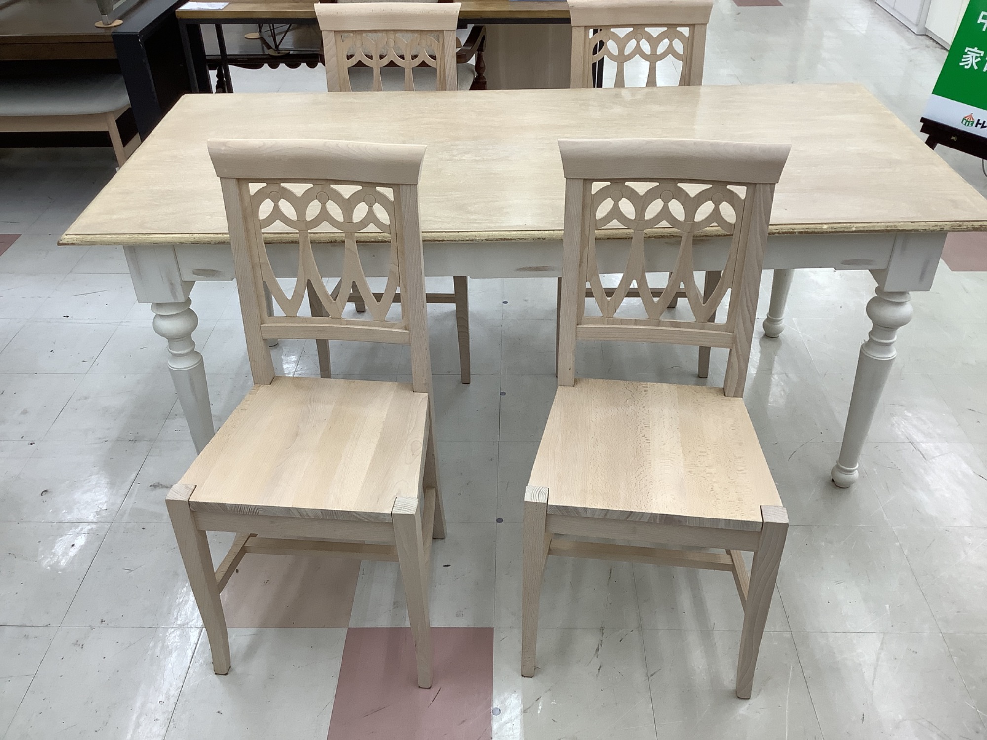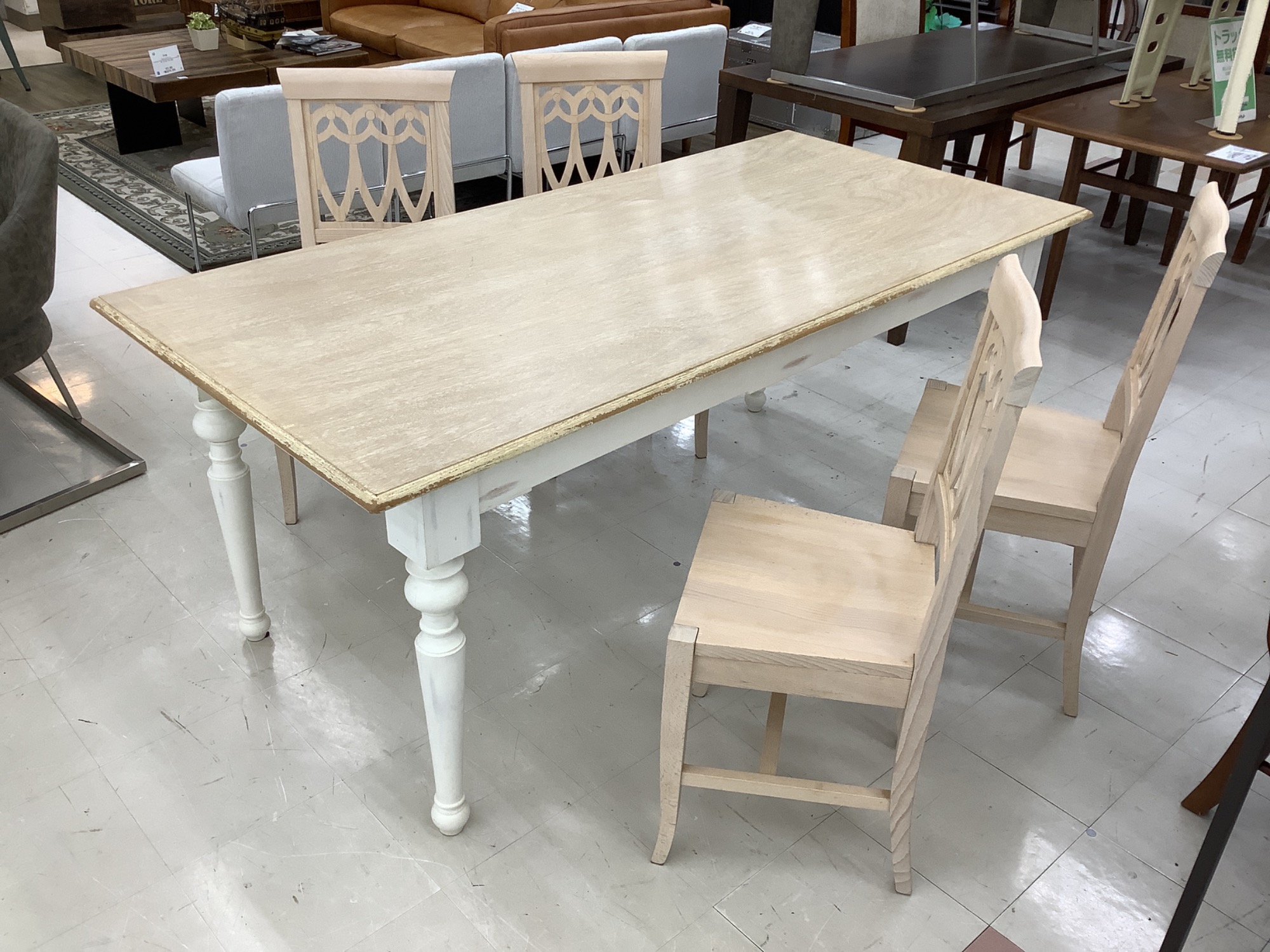 こんにちは!いつもご覧いただきありがとうございます。本日は、特別な一点物としてご紹介したい、中古家具「Franc franc (フランフラン) ダイニング5点セット アイボリー イルマチェア ログ 1800」をご紹介します。洗練されたデザインと美しいアイボリーの色合いが、お部屋に優雅な雰囲気をもたらします。