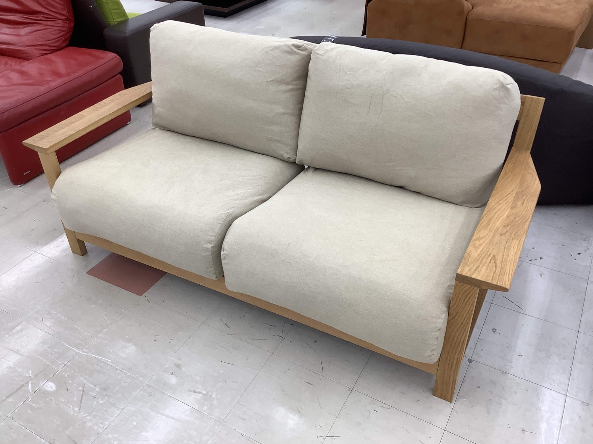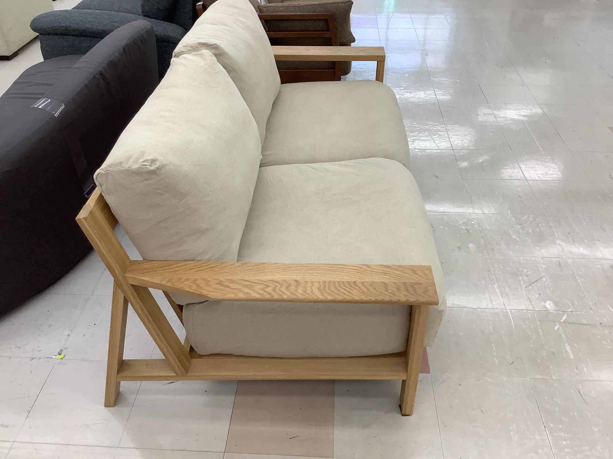 無印良品のソファーは品質が良く、長く使えることで有名ですが、新品では少し高価な場合もあります。でも、当店ではこのソファーをお手頃価格でご提供しています。中古家具で無印良品の良さを気軽に取り入れたいという方、ぜひお見逃しなく!