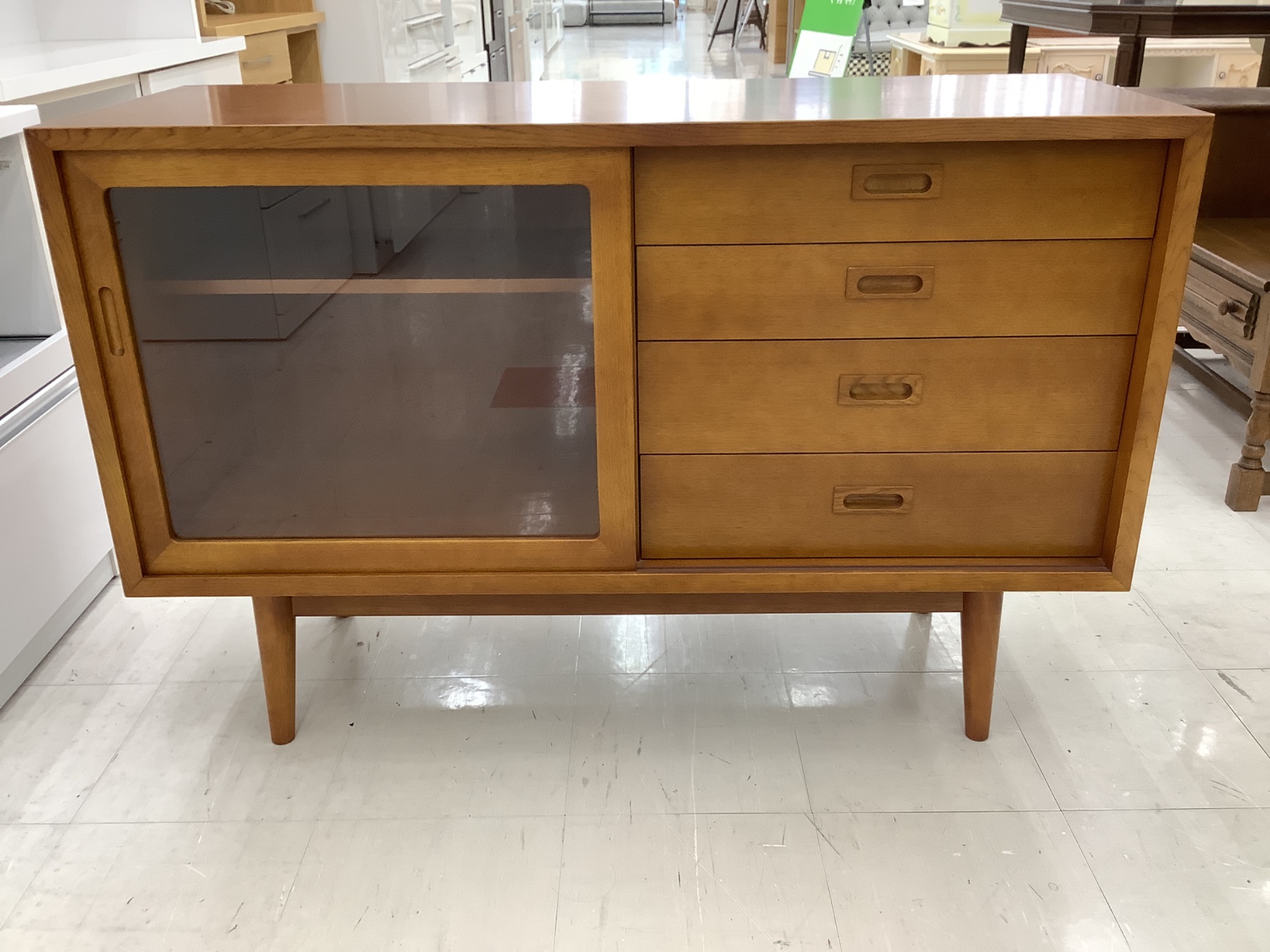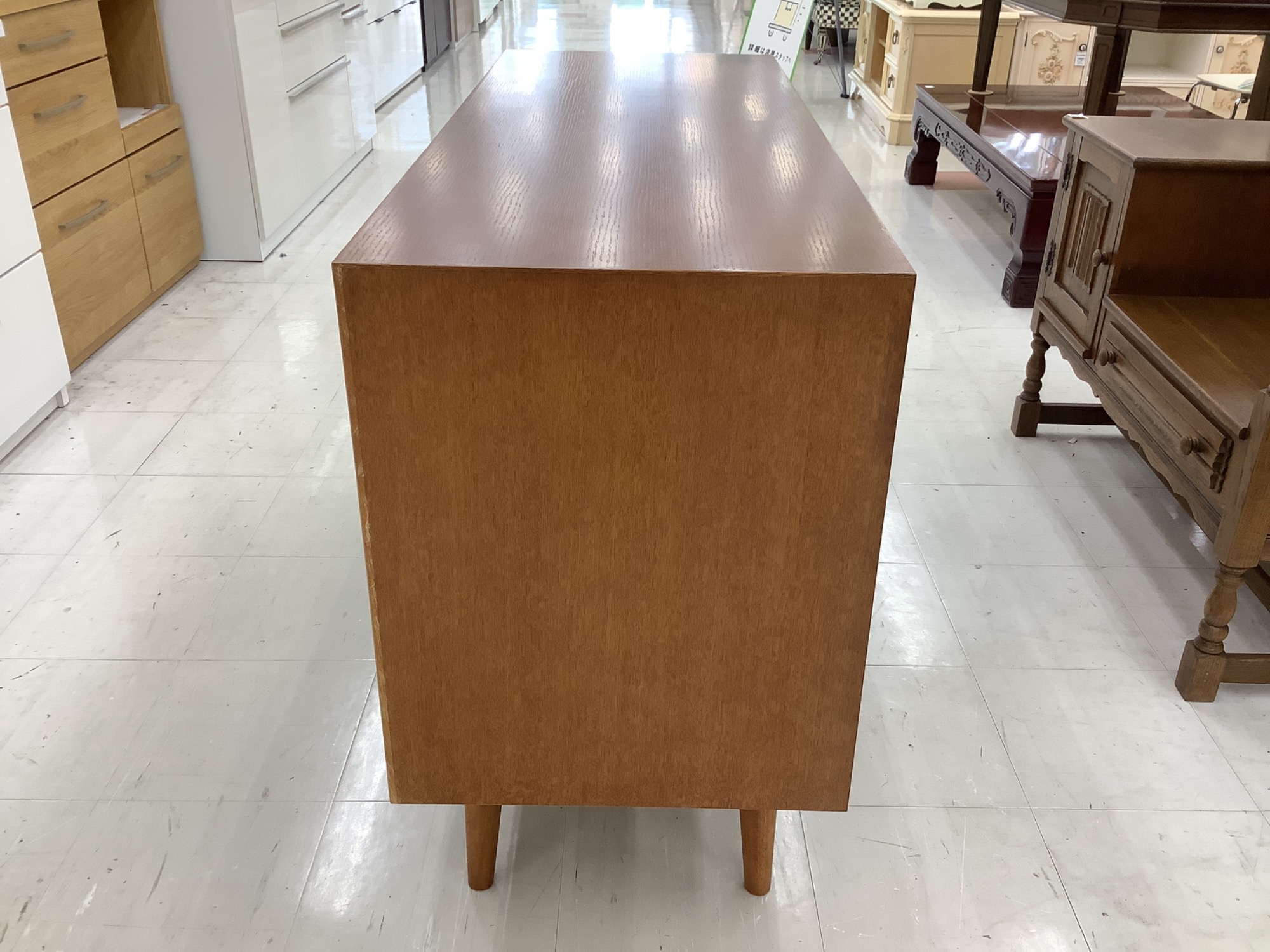 上げ脚タイプですっきりとした印象のサイドボードです。