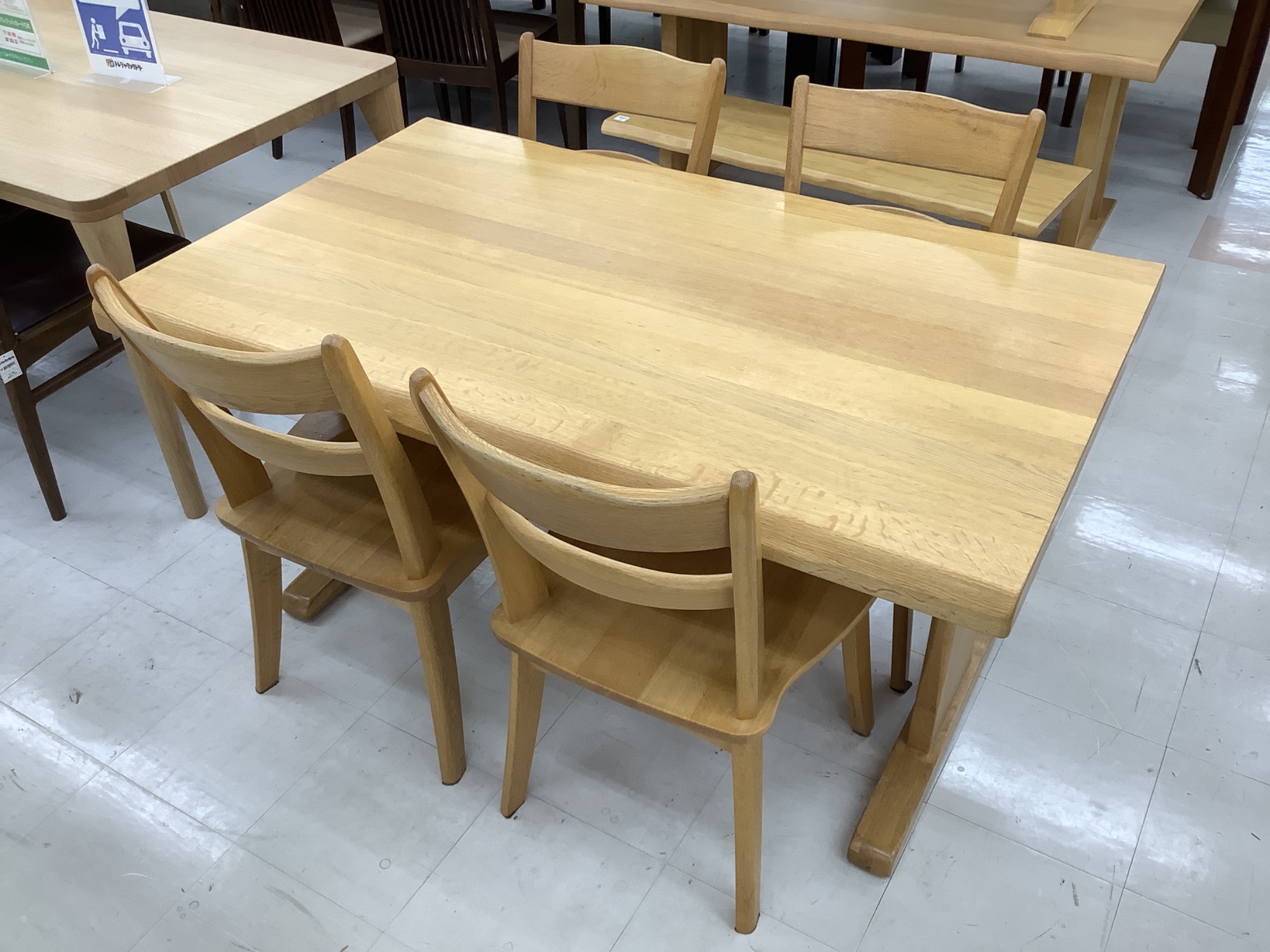 ibataの家具は、木の温かみを生かしたシンプルで飽きのこないデザインが魅力的です。このダイニングセットは、自然素材の美しさを最大限に引き出しており、心地よい空間を演出してくれます。
