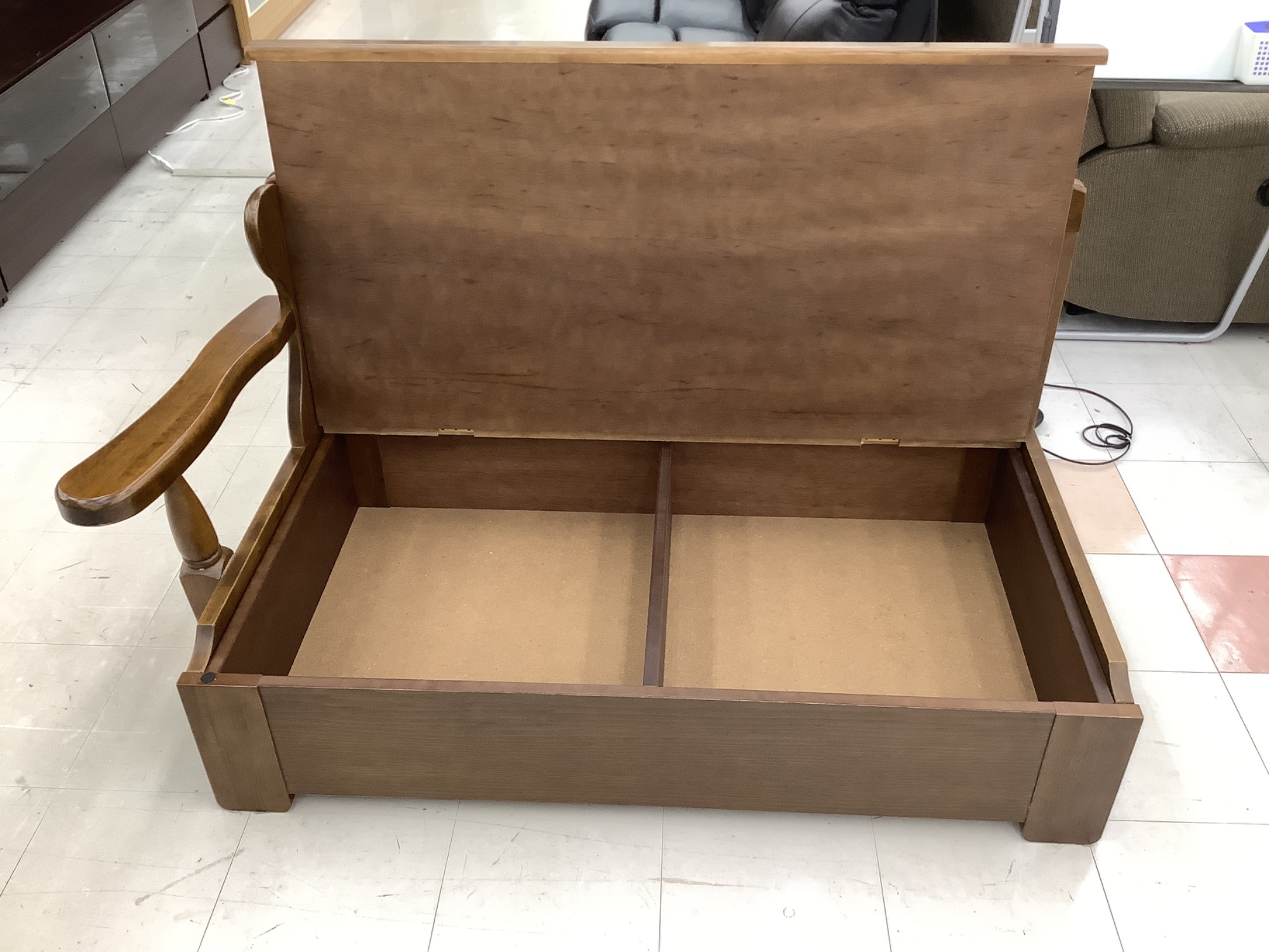 それぞれのベンチの座面を上げる事で収納スペースが出てきます。