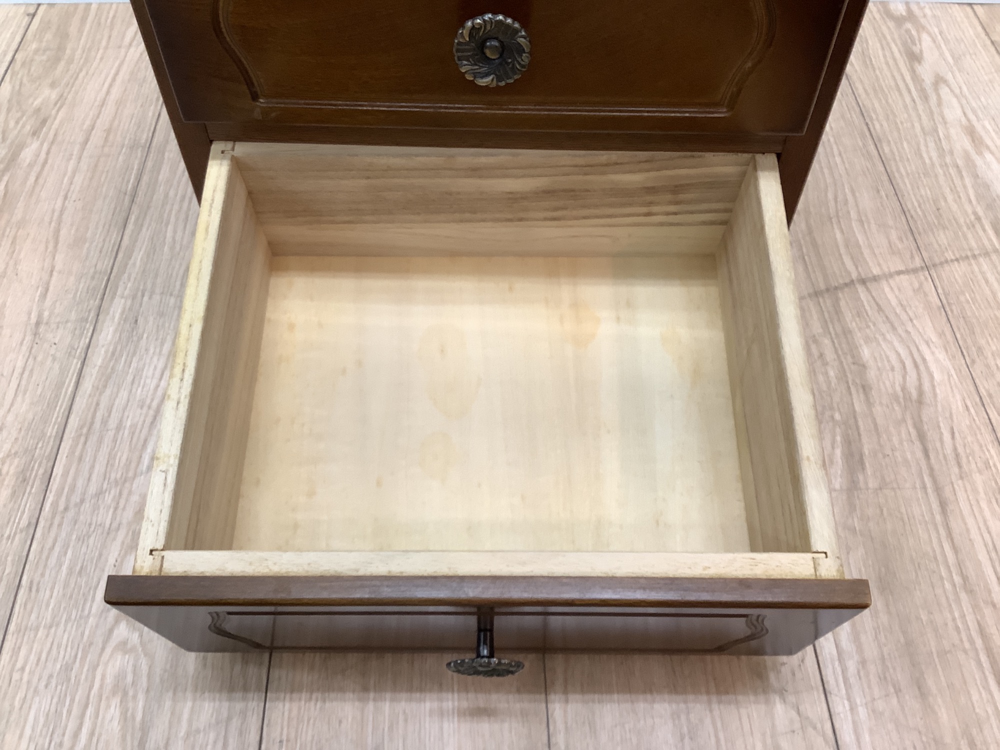 引出しも4段あり、収納力も抜群です! どこかレトロを感じさせてくれる逸品!