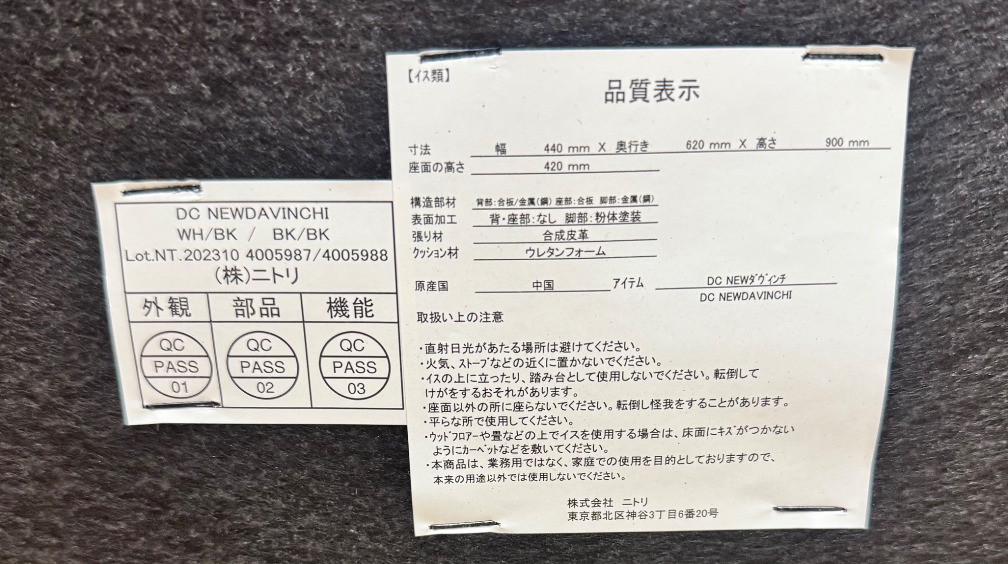 状態 チェア側面キズ・ハガレ有