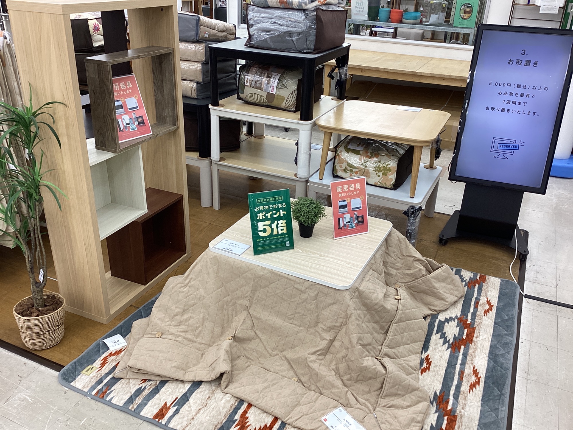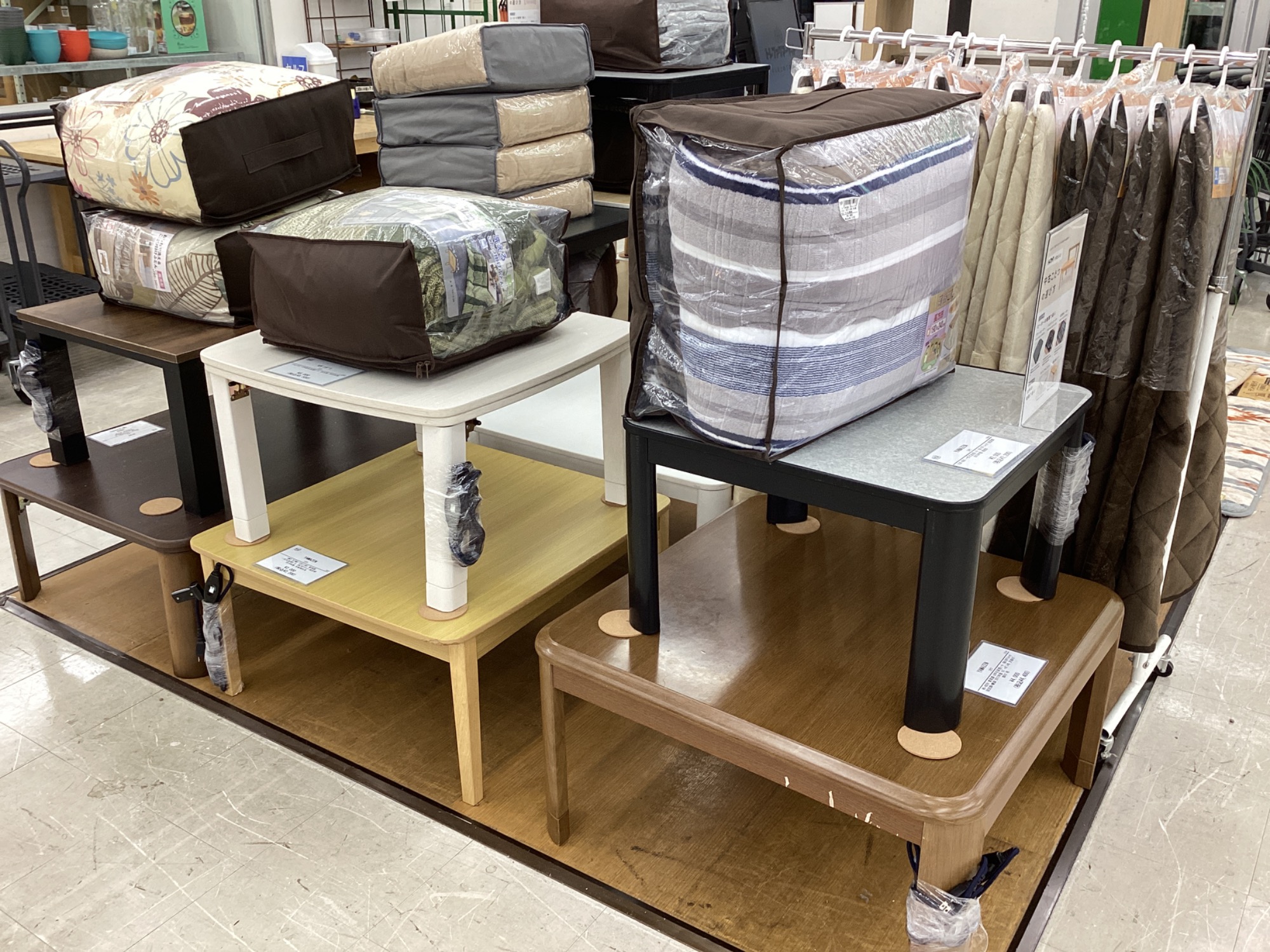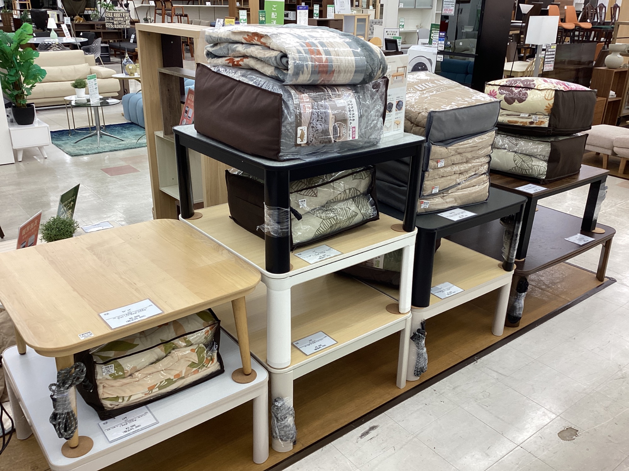 すぐにお使いいただける様にコタツ布団も一緒に展示中!!