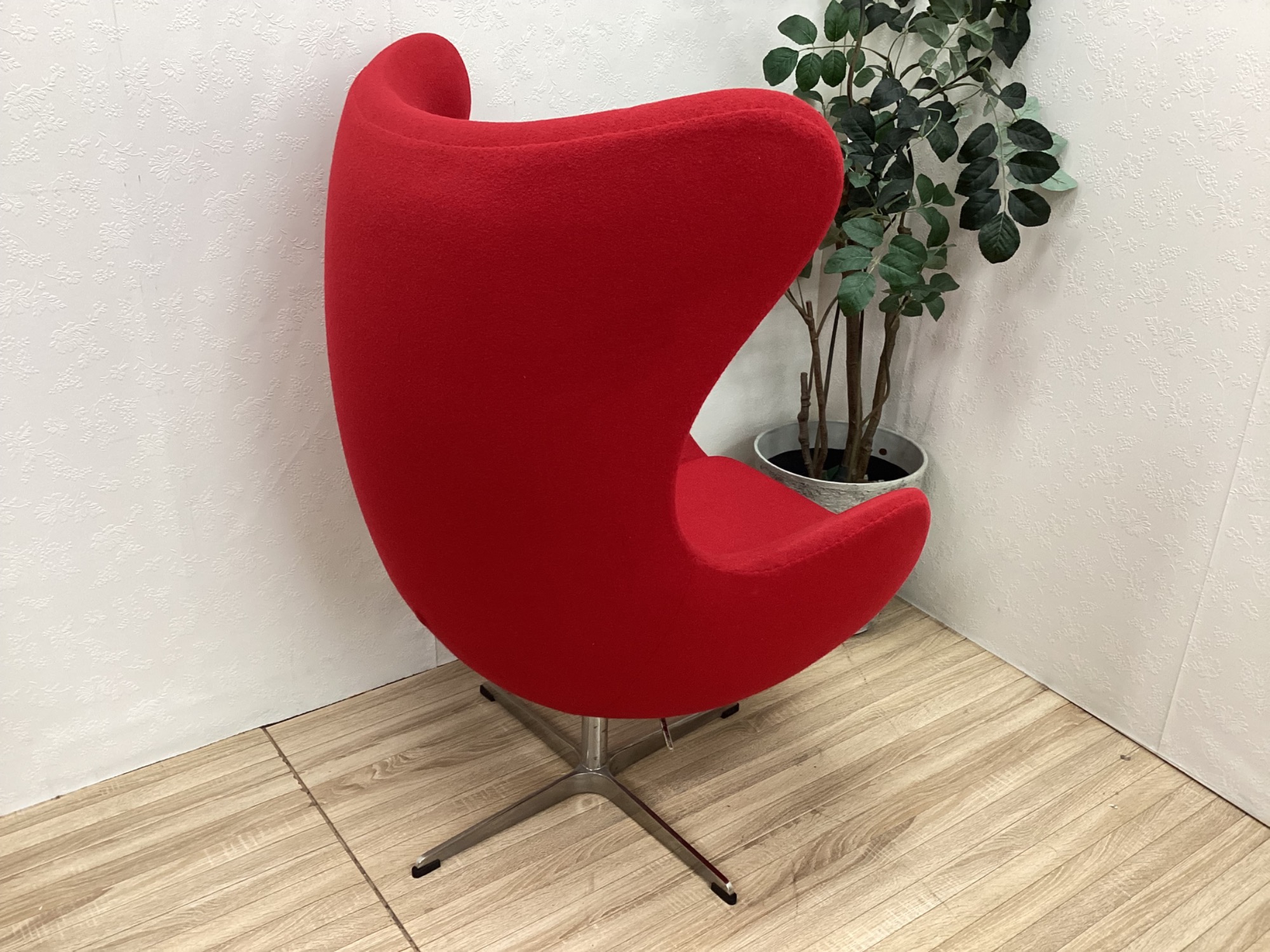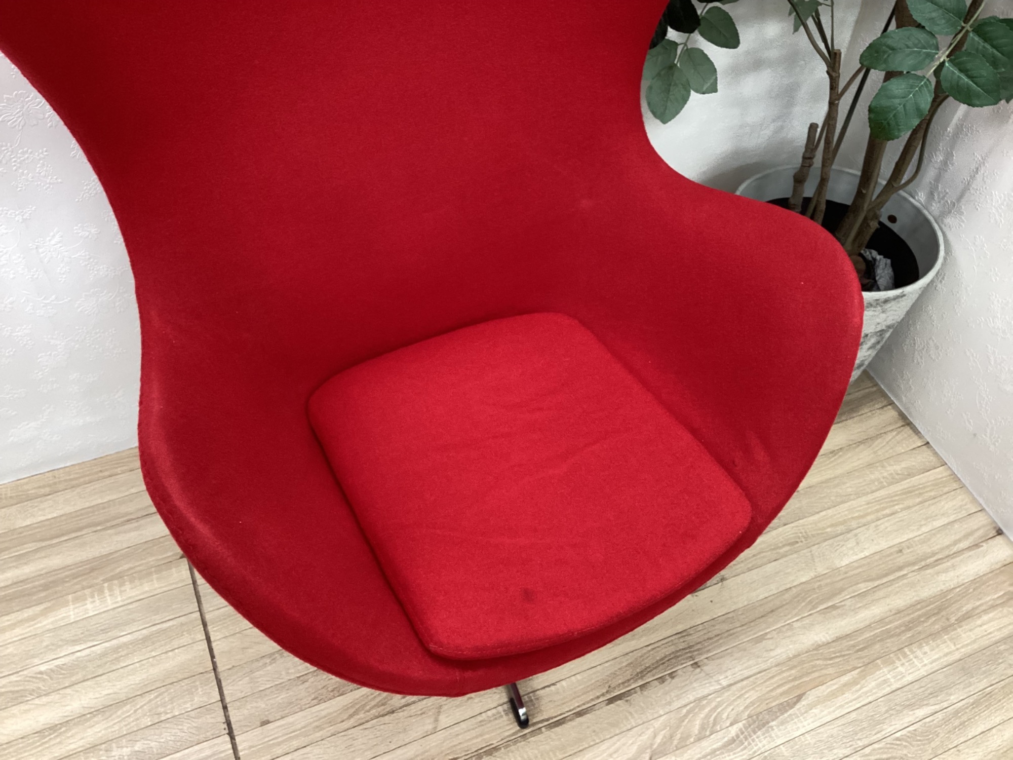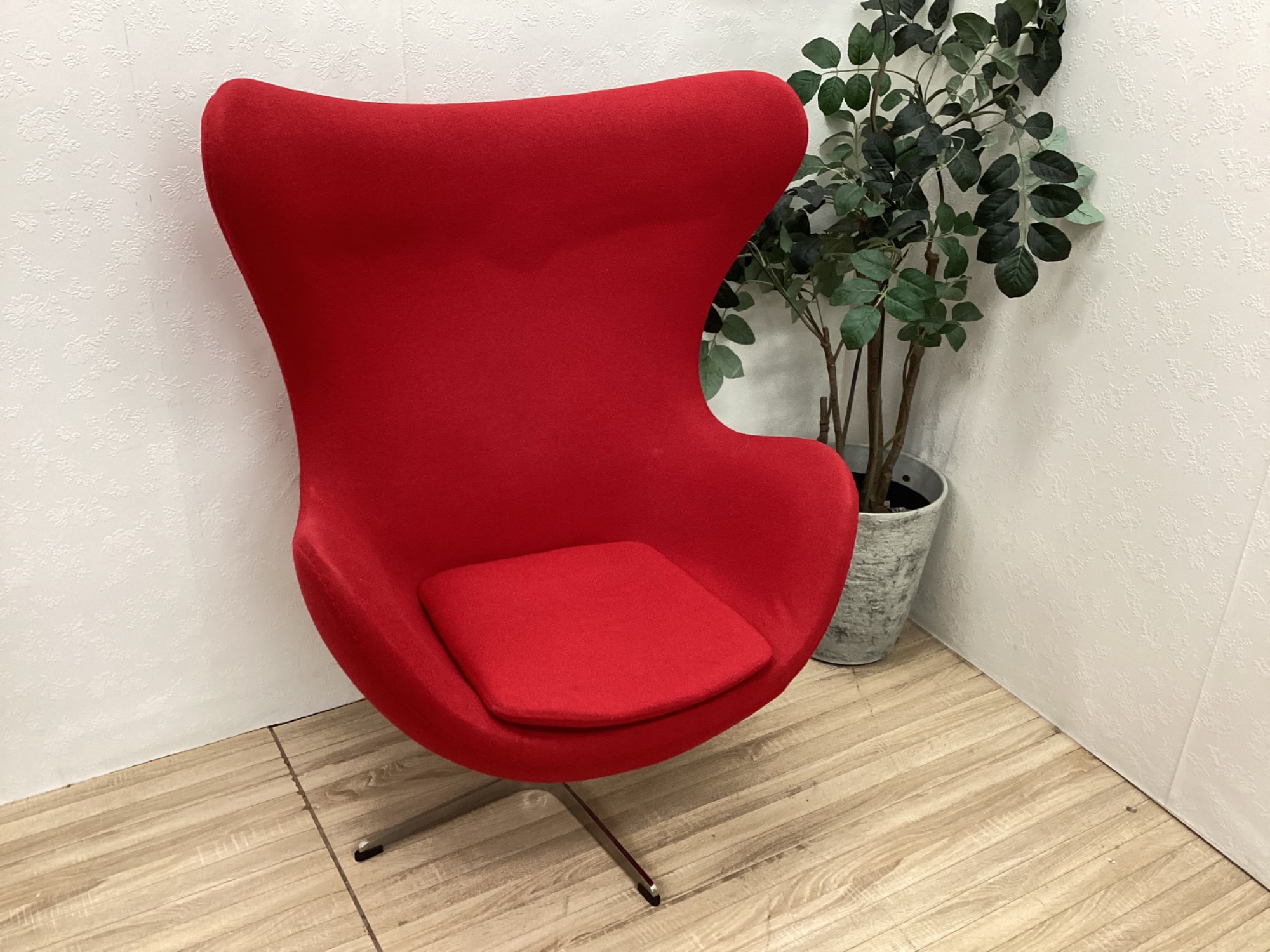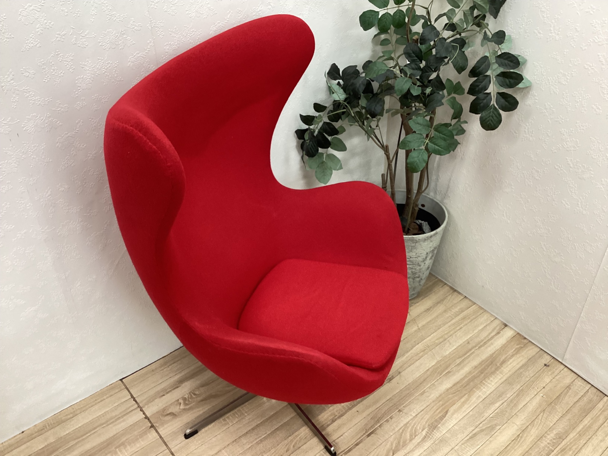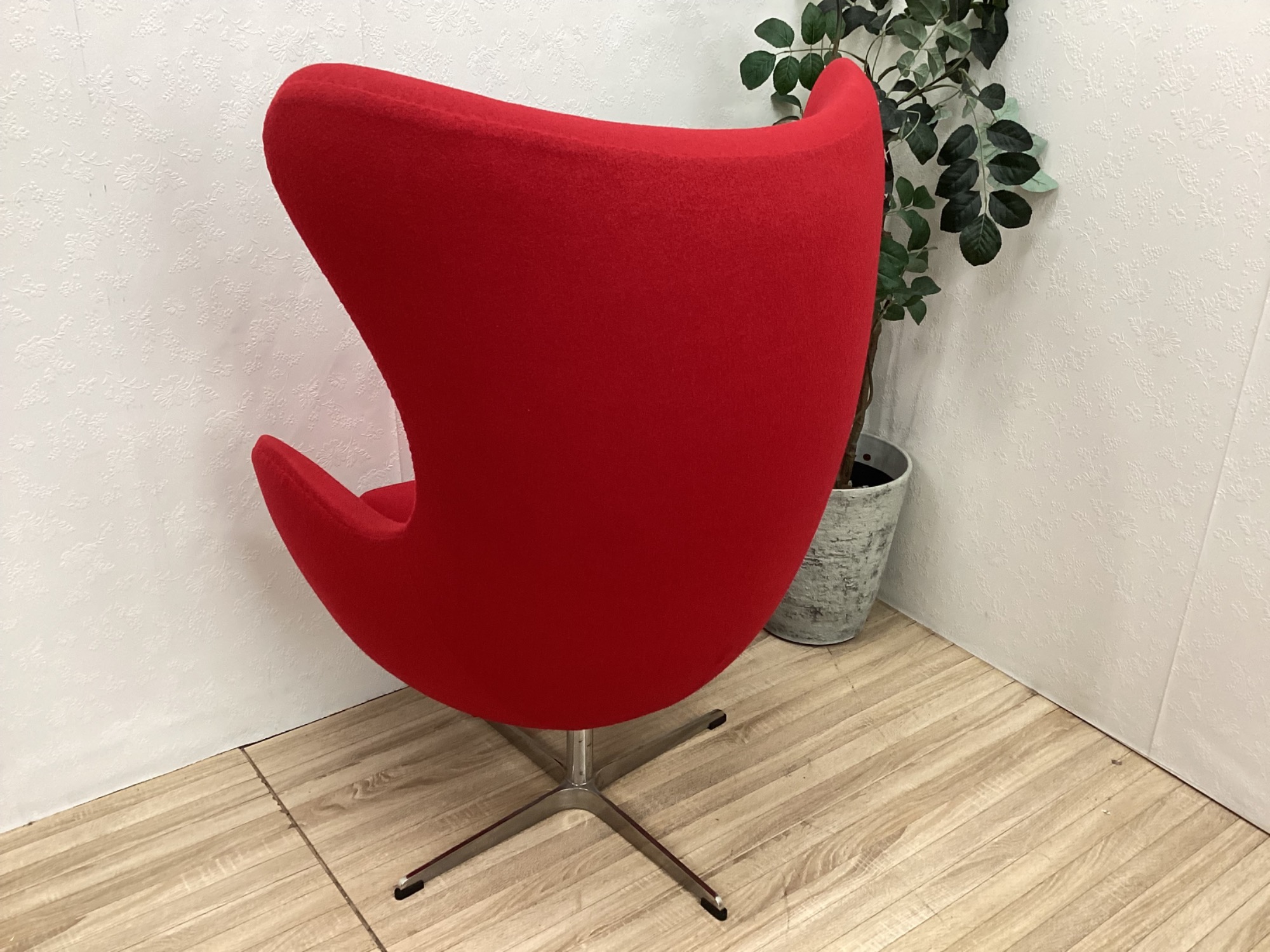 目を引くレッドで、お部屋をパッと華やかに演出してくれるEGG Chairです!!