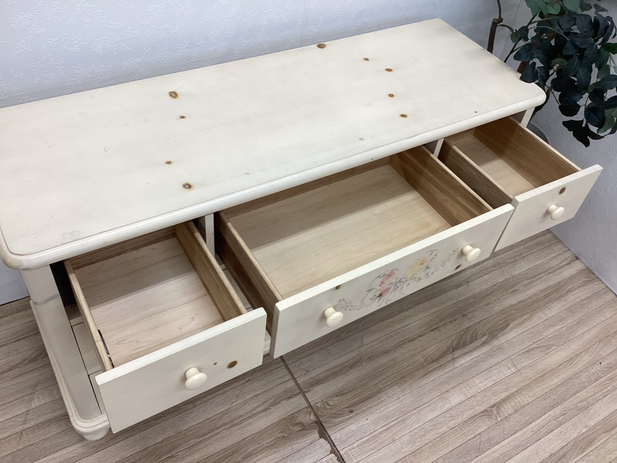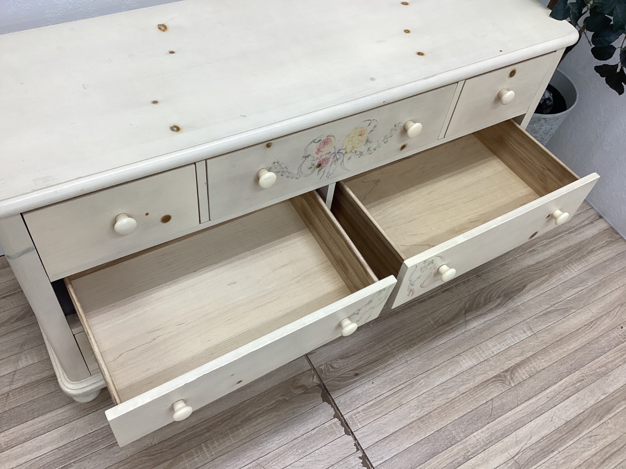 それぞれ深めの引き出しで衣類やリネン、雑貨などをしっかり収納できます!!