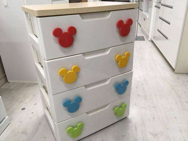 取っ手がミッキーになっているかわいらしいチェスト!