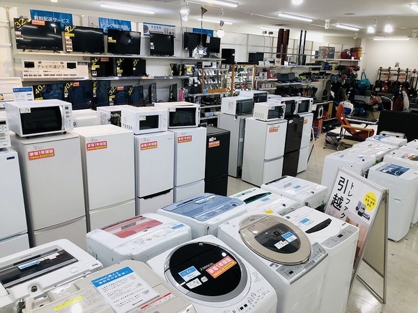 当店2階では大型の家電製品から、電気ケトルや電子レンジなど