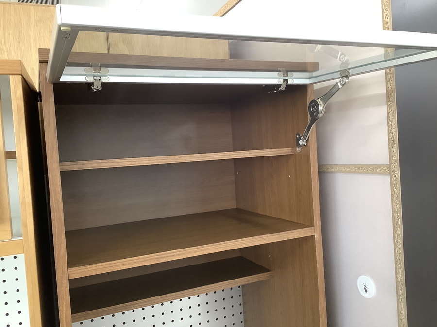 上のガラス扉は手前へひく感じで上に開きます!!