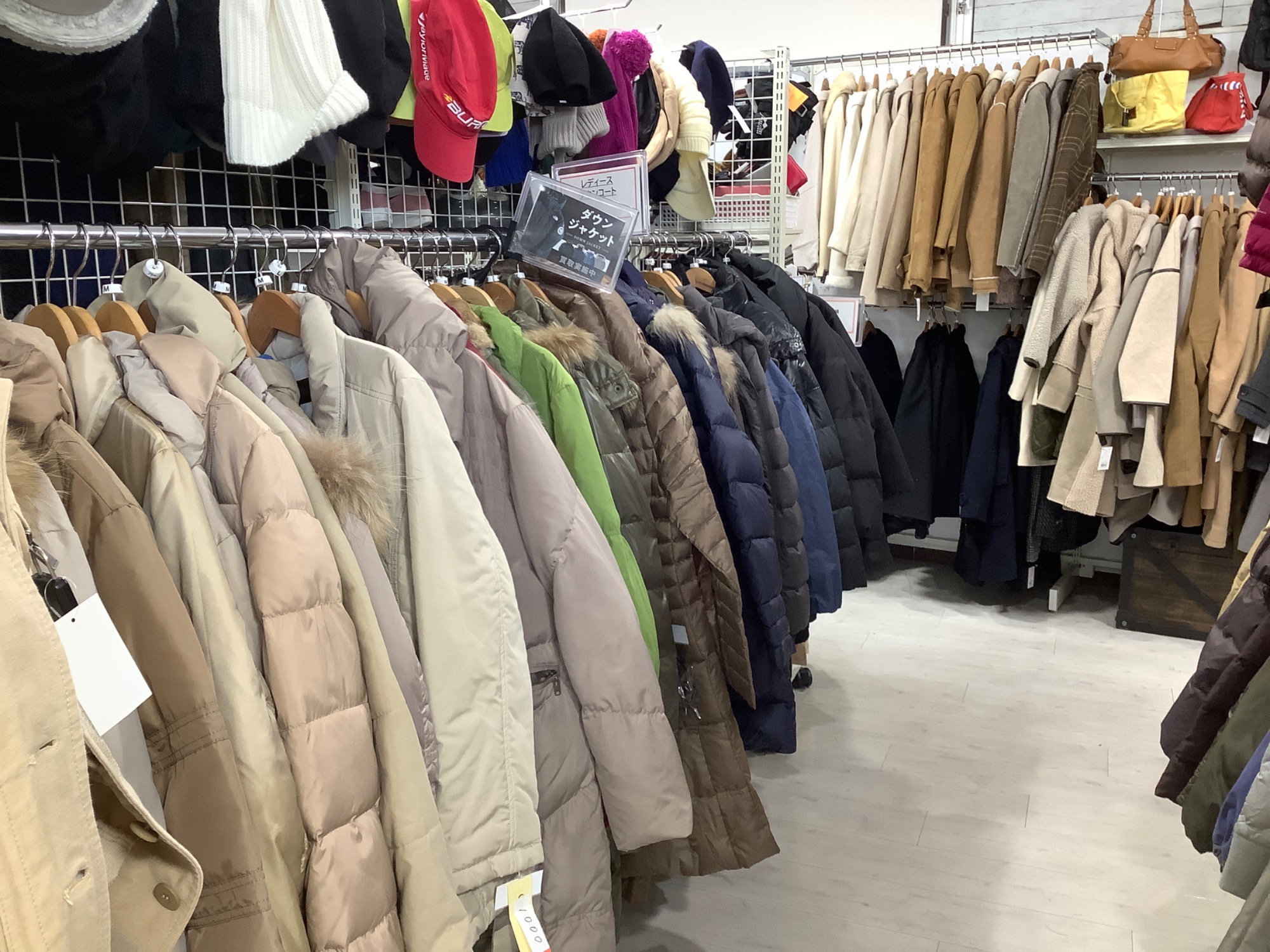 レディース冬物アウターが50%オフになって並んでいます!