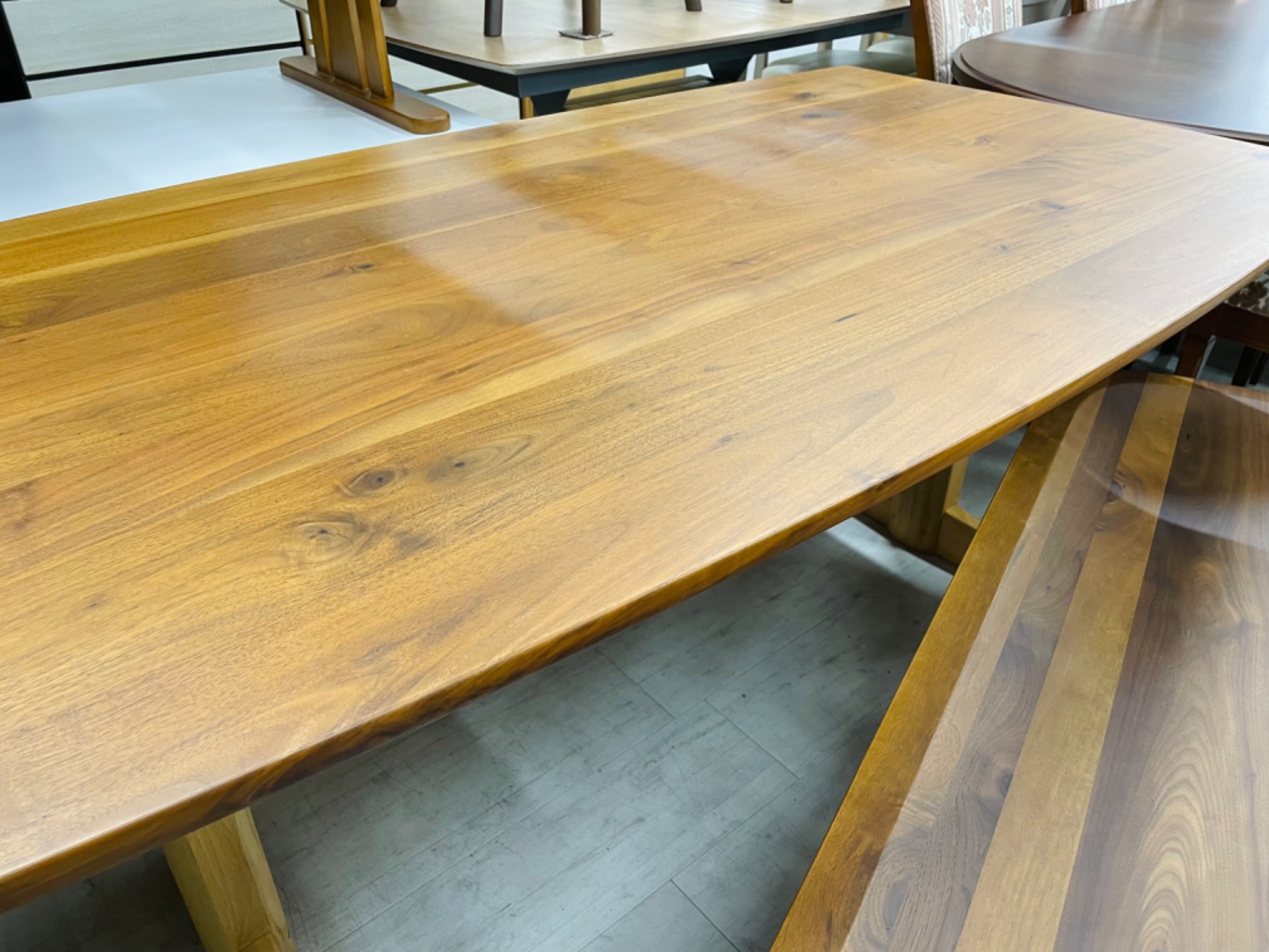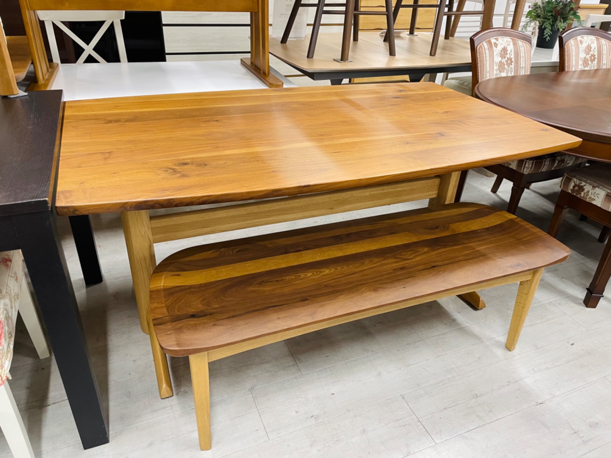 木の風合いをいかしたダイニングテーブルで、