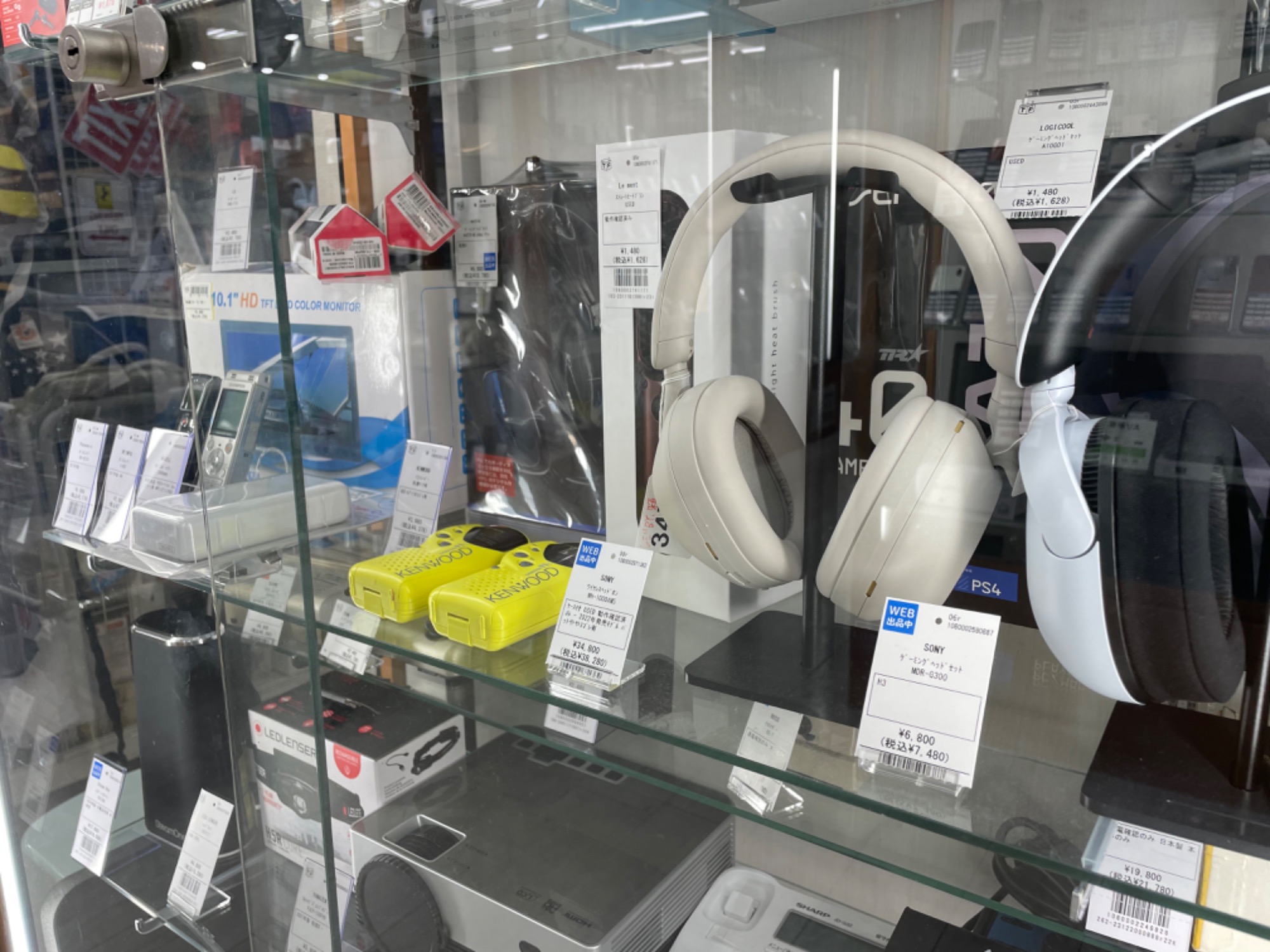 商品はガラスケース内で展示しておりますので、
