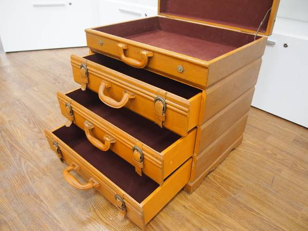 スーツケースの取っ手がそのまま引き出しになっている遊び心のあるデザイン!
