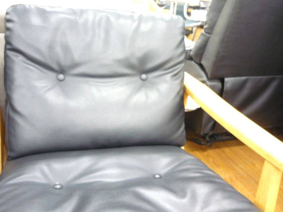 オークフレームで暖かな印象でブラックのビニールレザーもシックでおしゃれ♪