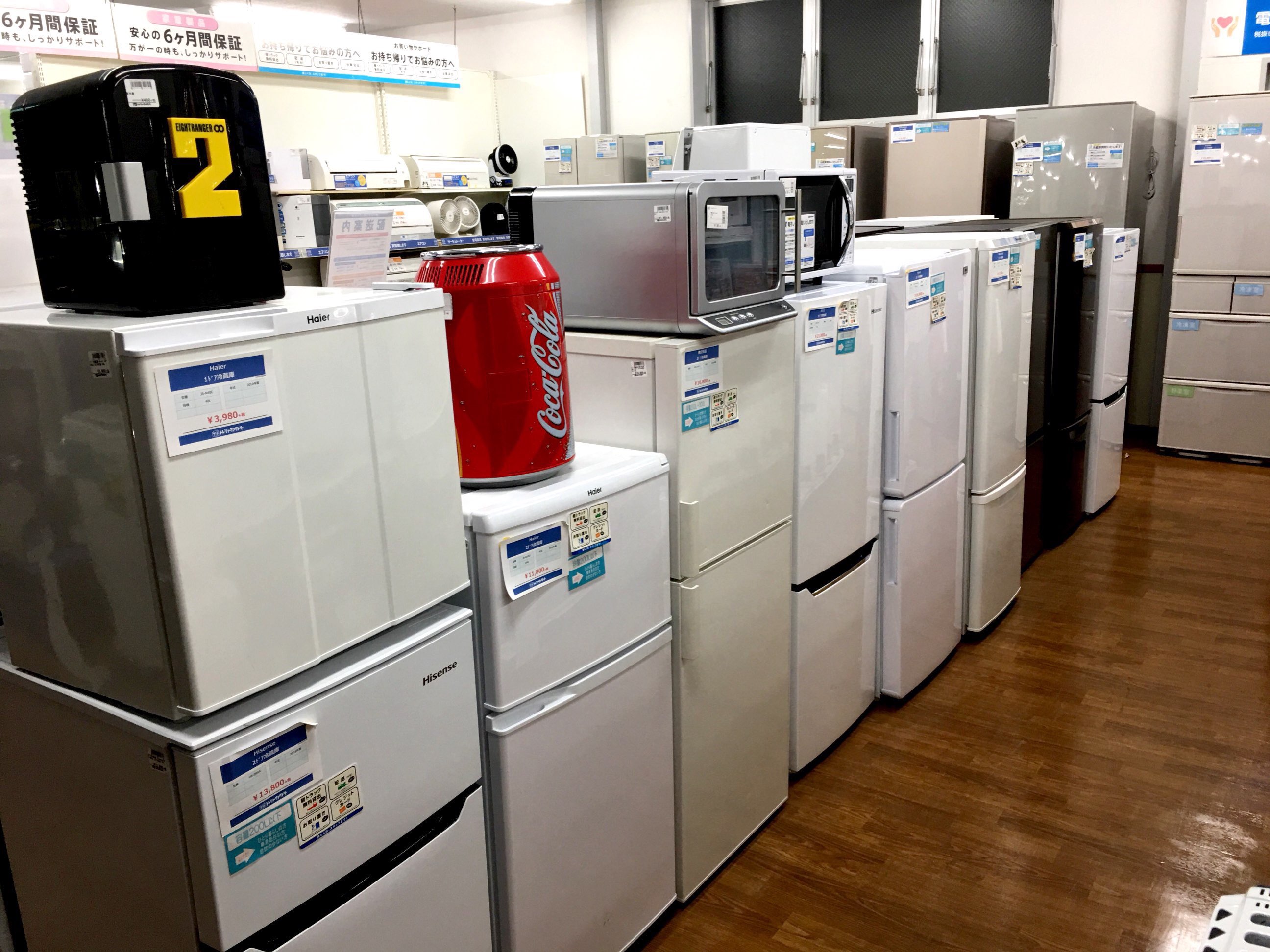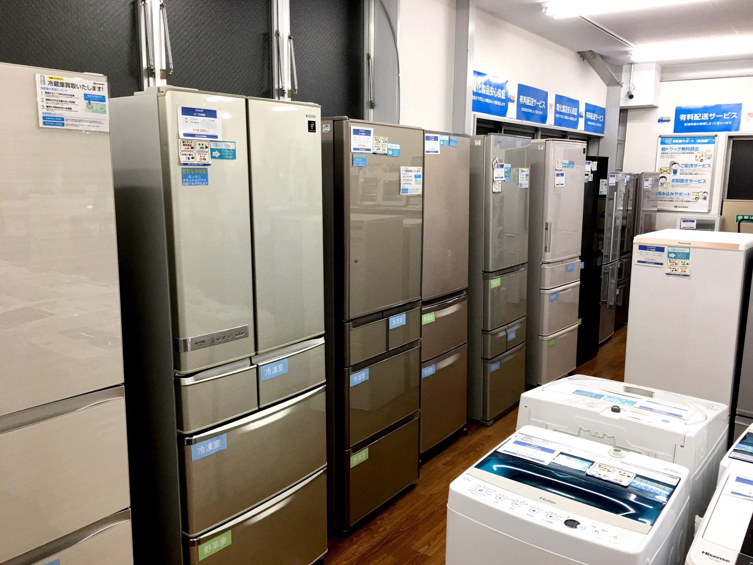 冷蔵庫:35台(1ドア3台・2ドア21台・大型11台) 洗濯機:20台