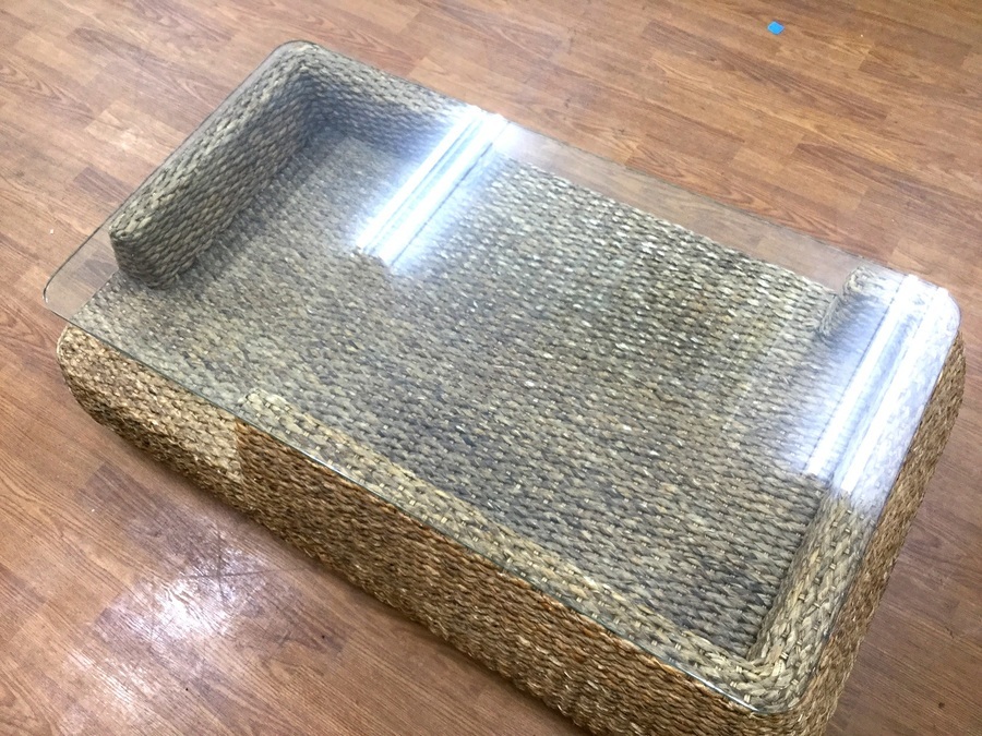 商品名:ウォーターヒヤシンスガラス天板ローテーブル