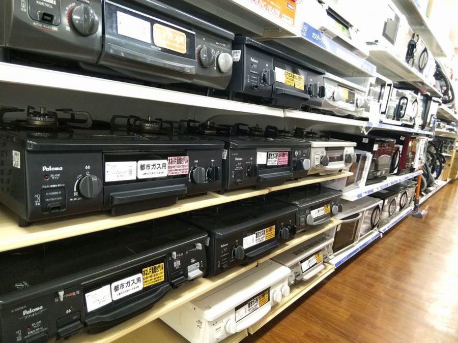 当店では他にもガステーブル、レンジ、炊飯器、電気ポット、ミキサーなどなど