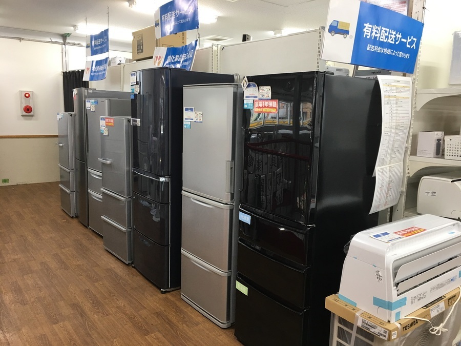 当店は各サイズ冷蔵庫を多数展示しております!