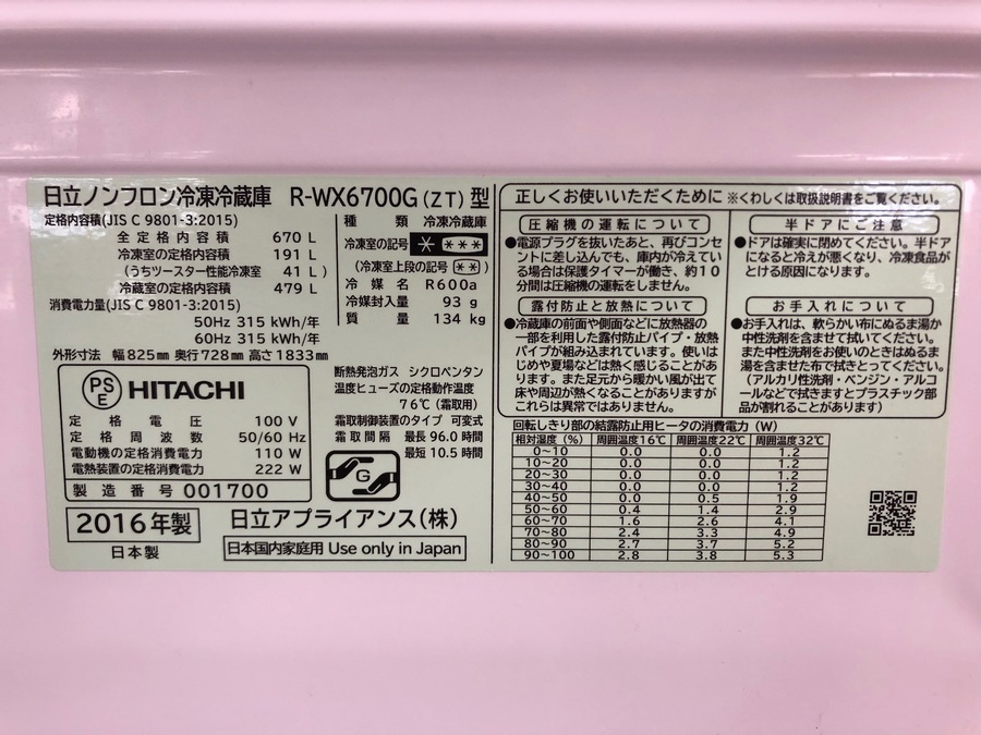超巨大!日立から2016年製6ドア冷蔵庫です!