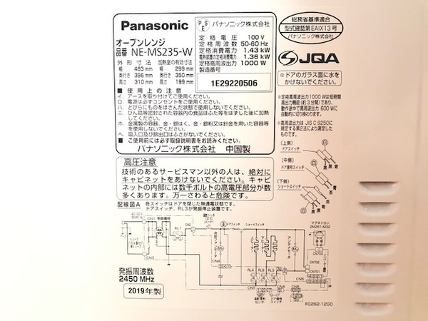 アイテム名:オーブンレンジ(NE-MS235-W)
