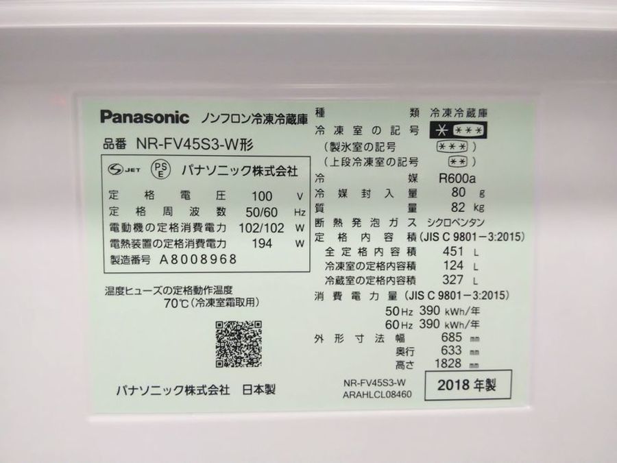 アイテム名:6ドア冷蔵庫(NR-F45S3-W)