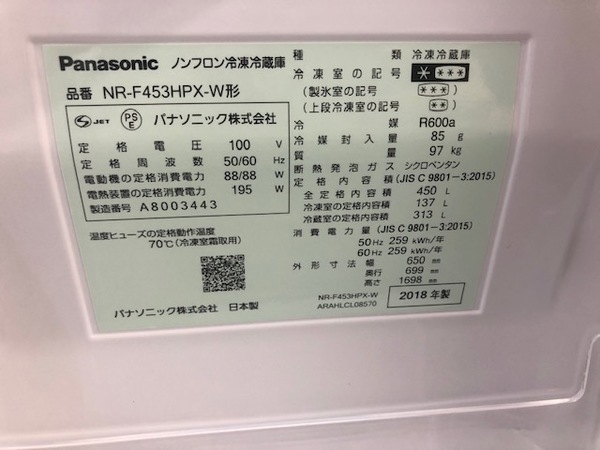 アイテム名:6ドア冷蔵庫(NR-F453HPX-W)
