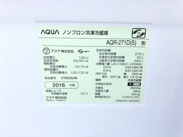 アイテム名:3ドア冷蔵庫(AQR-271D)