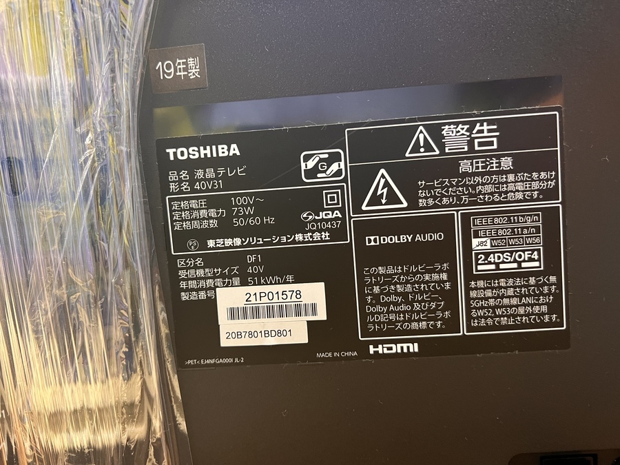 【TOSHIBA】REGZA2019年製40インチの液晶テレビを買取入荷いたしました!