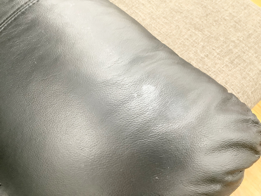 肘掛が低く横に広いデザインで、横になった時にまくらとして使える