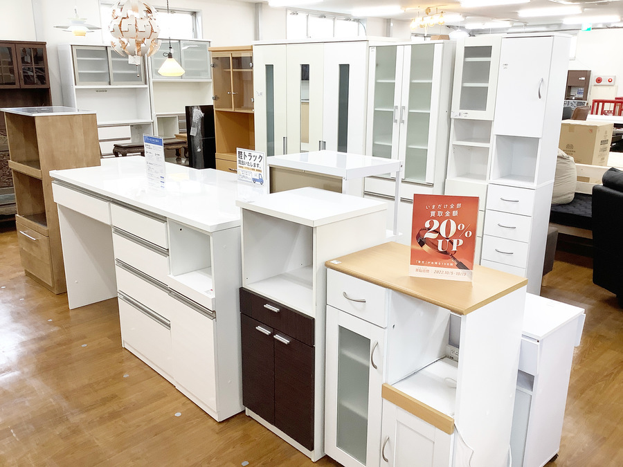 キッチンボード、レンジボードなどのさまざまな家具の在庫がございますので