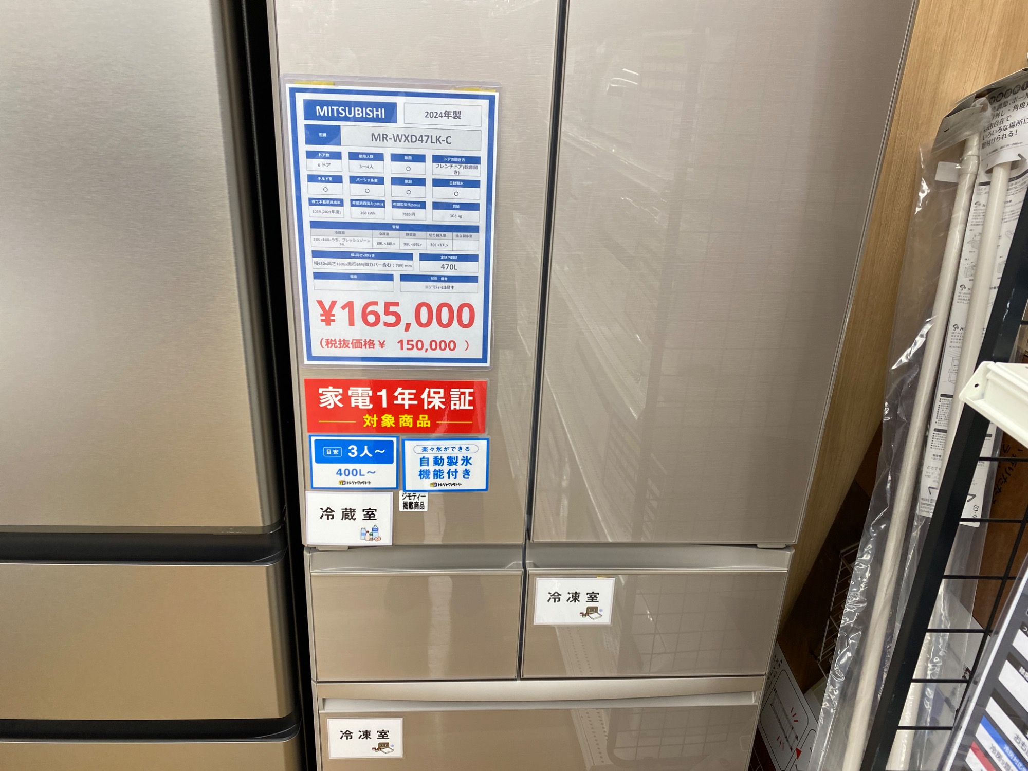 大型冷蔵庫も多数展示中!冷蔵庫のご購入当店でいかがでしょうか?