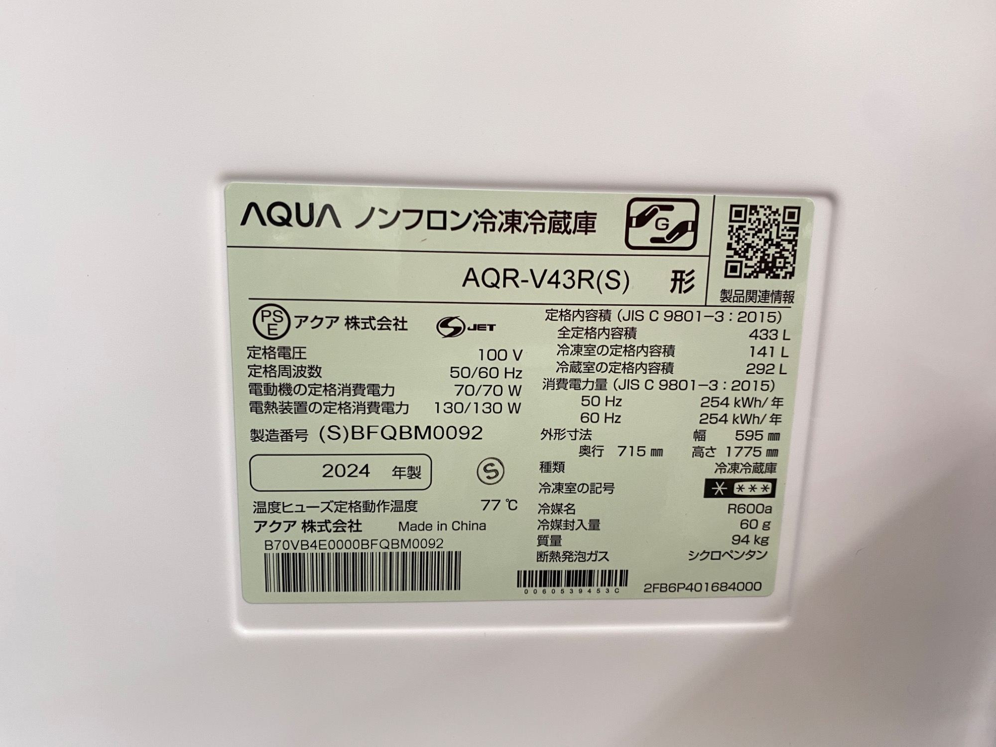 型番 AQR-V43R