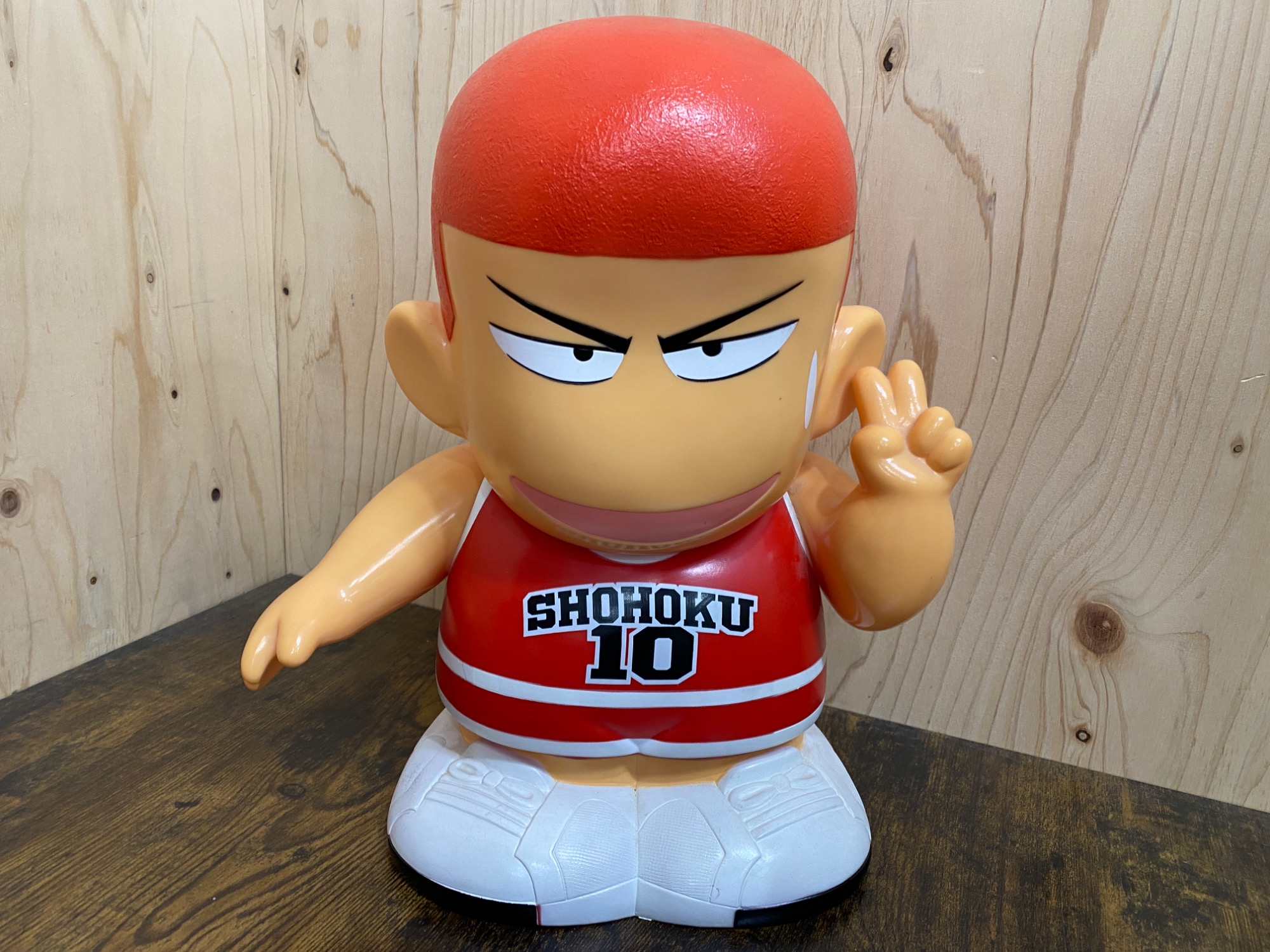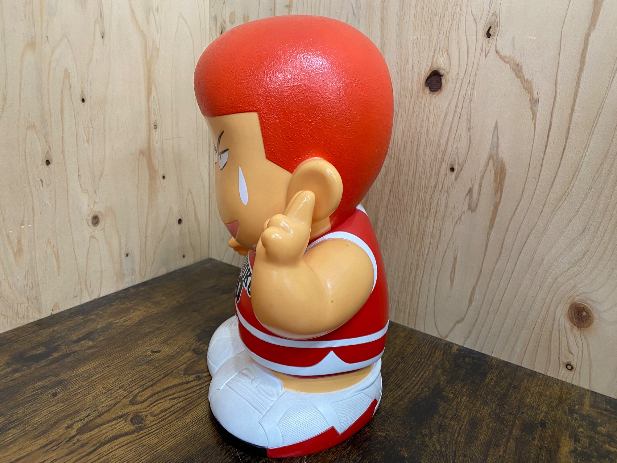 一点目は、こちらのアイテムになります。漫画『SLAM DUNK』の主人公・桜木花道を象った貯金箱となっており、全高約35cmとかなり大きめのサイズとなっています。