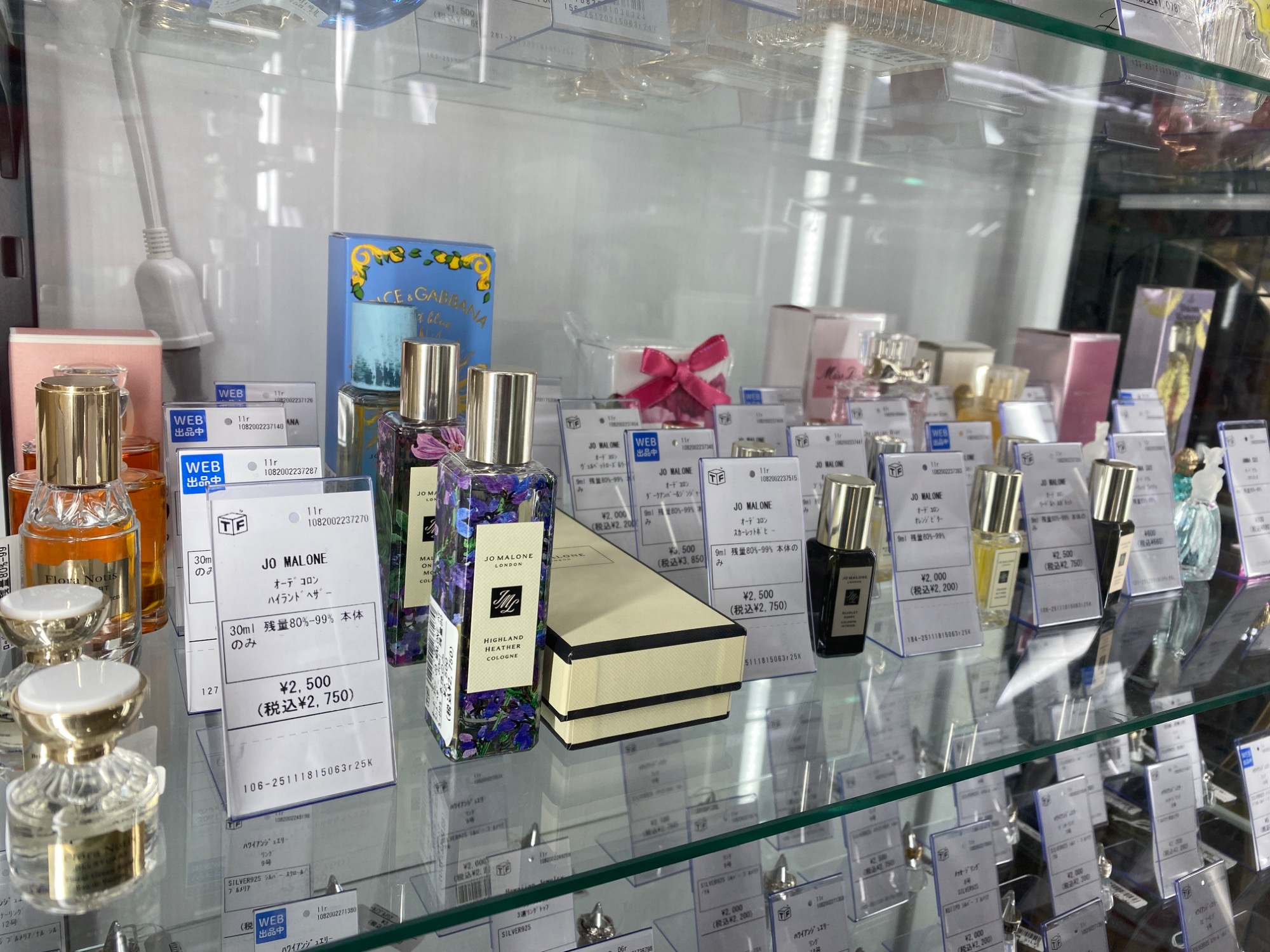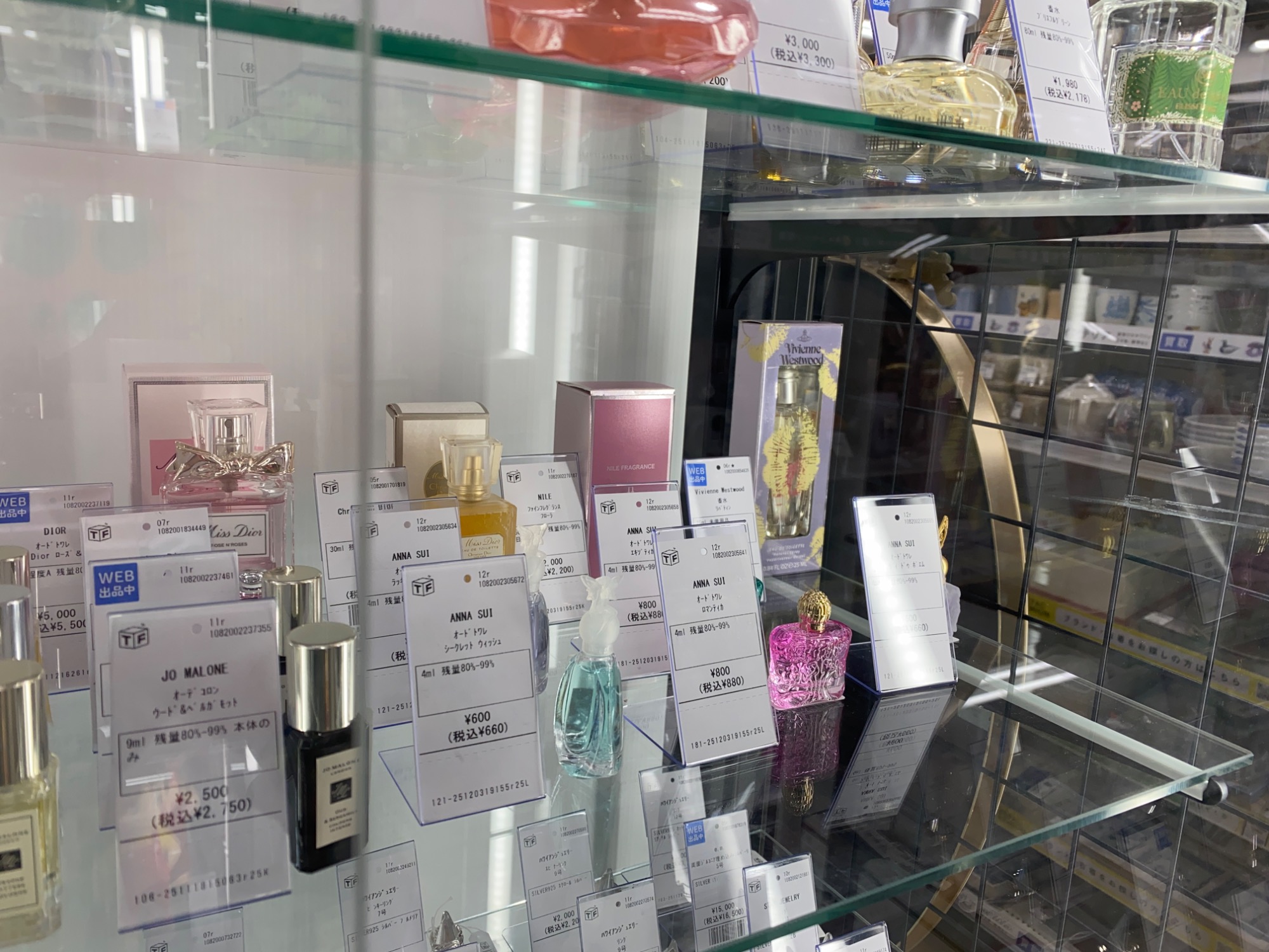 ショーケース上部には、香水類を展示しております。