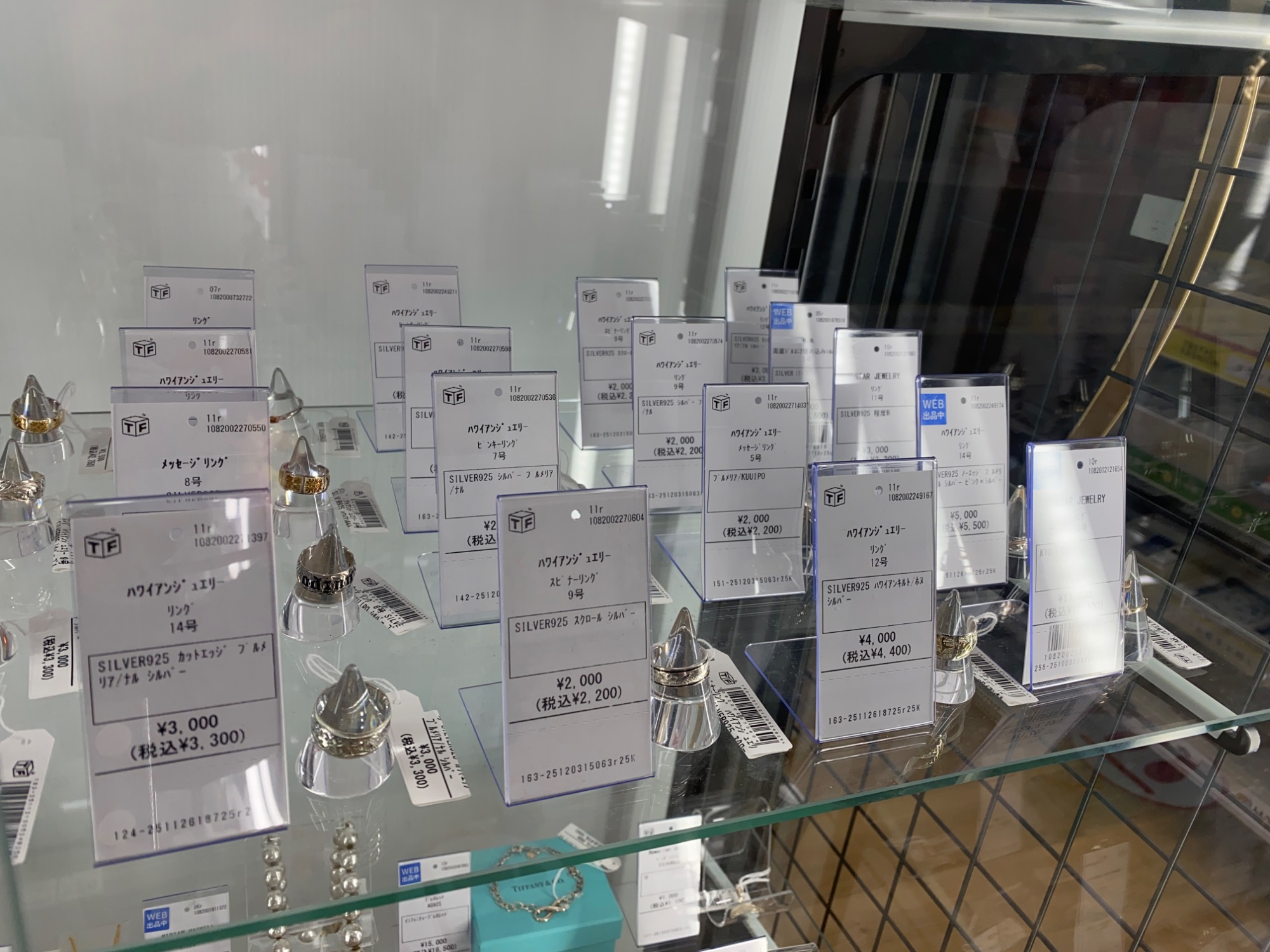 リングやネックレスなど、多数展示中です。
