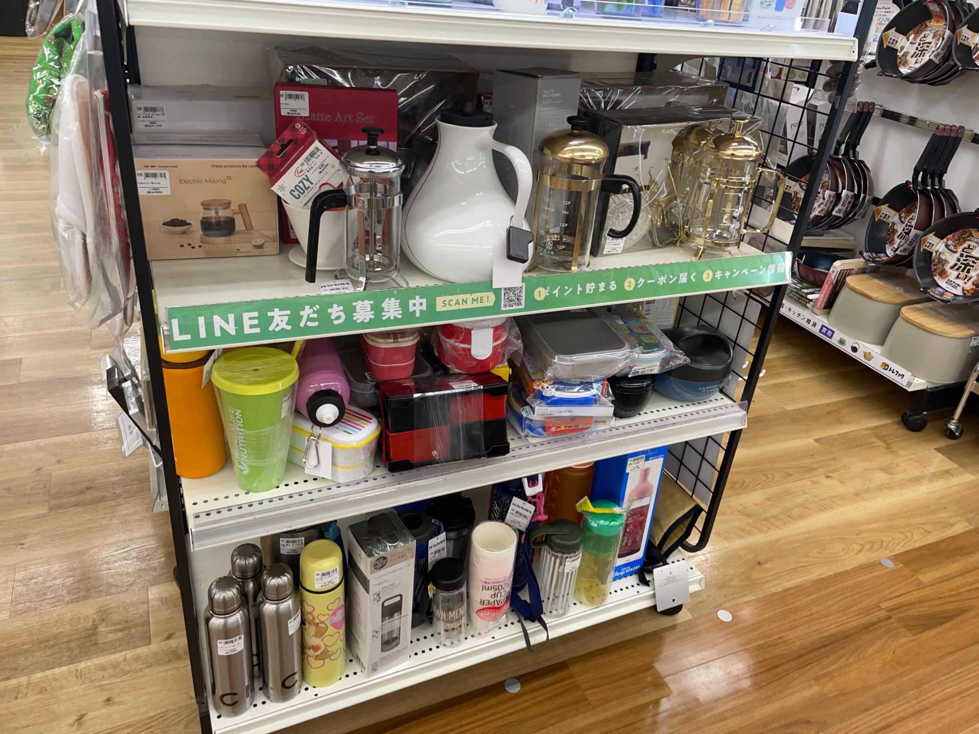その他、コーナー下段にはコーヒーを淹れる際に活躍するアイテムも揃えております。タンブラーと併せて、ゆったりとティータイムを楽しんでみてはいかがでしょうか。