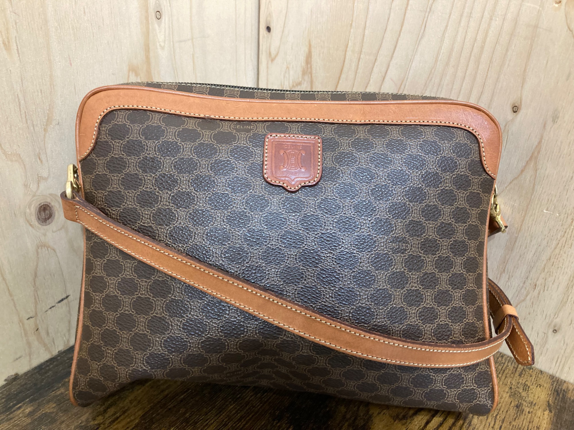 今回ご紹介するアイテムは、こちらのショルダーバッグです。フランスのブランド・CELENE (セリーヌ)が手掛けた一品となっております。