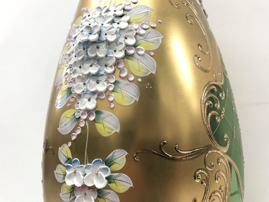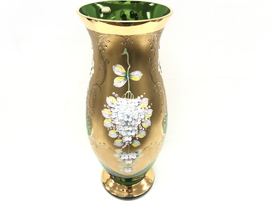 チェコスロバキアより..素敵なボヘミヤのフラワーベース買取入荷です。