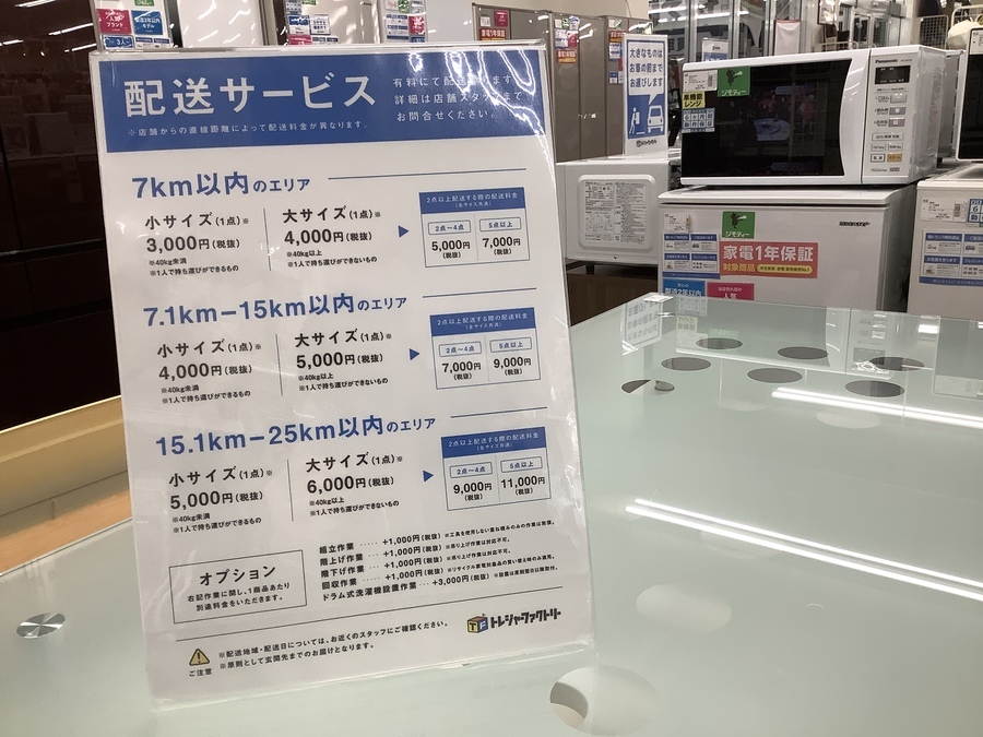 当店では有料の配送サービスや