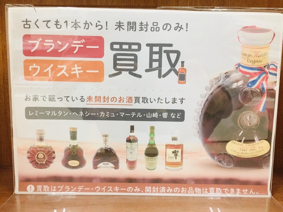 当店では、未開封のウイスキー・ブランデー・焼酎のお買取を大募集中です!