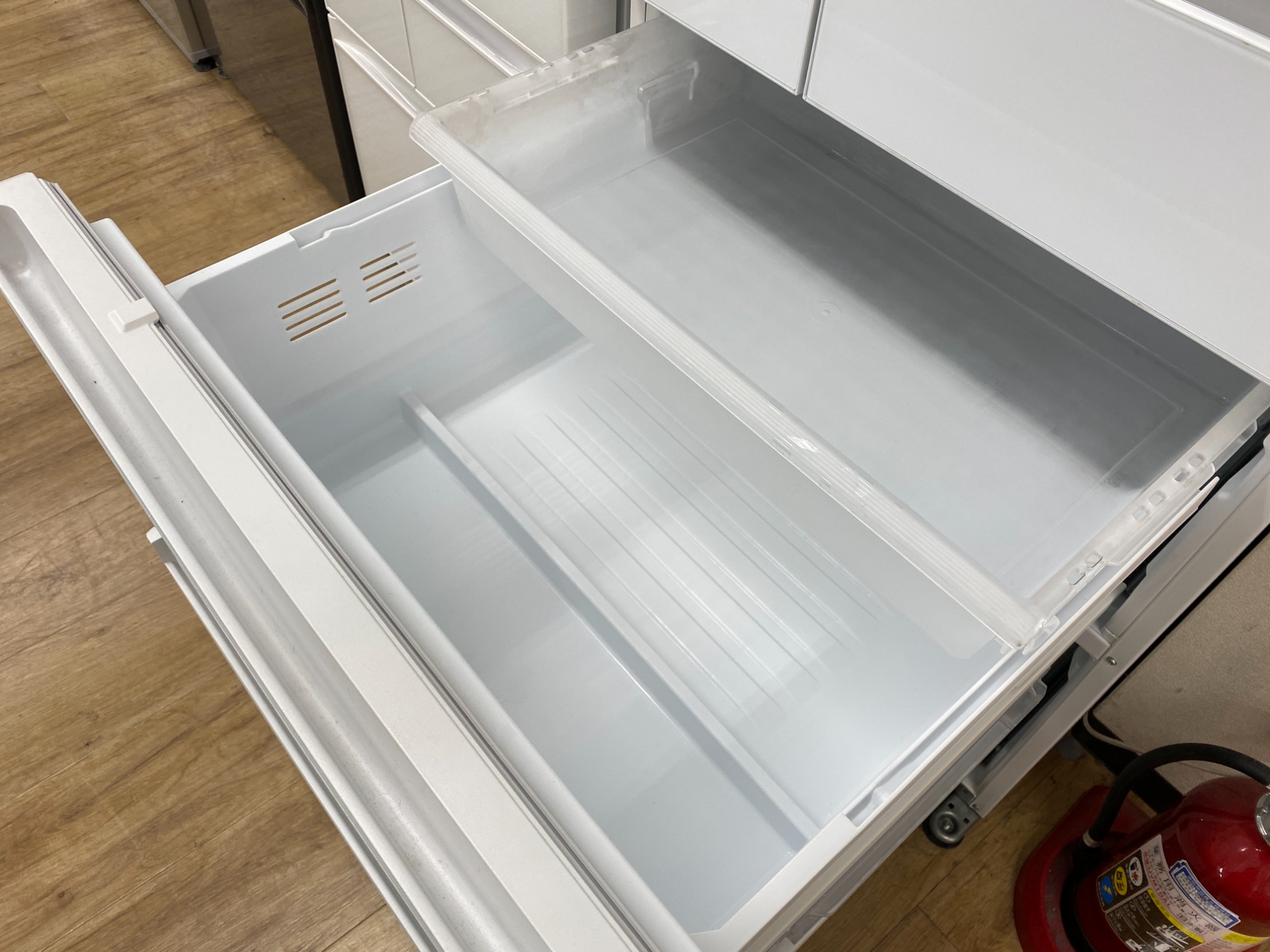 上段はとても広く、ドアポケットやチルド室にも沢山の食材や飲み物が保存する事が可能です!!